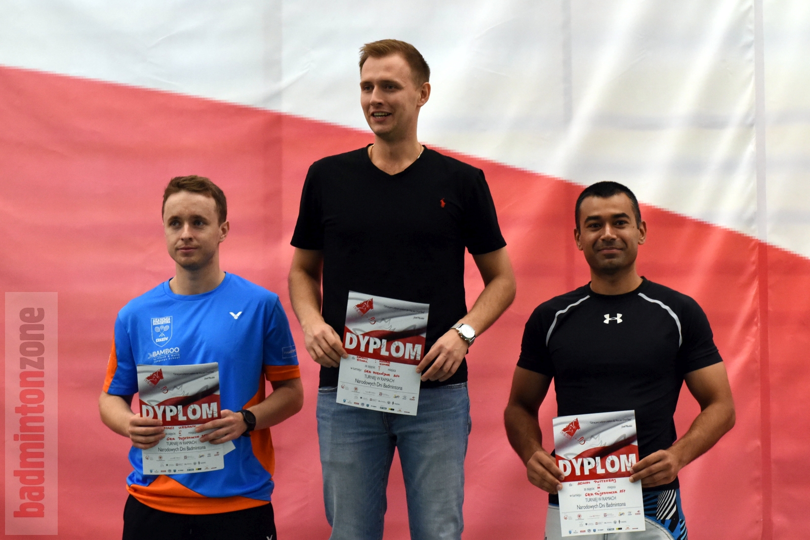Ostatnim akordem przedsięwzięcia były rozpoczęte w sobotę, a kończące się w niedzielę turnieje seniorów i amatorów rozgrywane w dwóch halach Centralnego Ośrodka Sportu (COS — OPO). Na fot. medaliści najmłodszej kategorii turnieju seniorów; od lewej: Tomasz Urbanik (AZS AGH Kraków), Mateusz Dynak (Badminton School w Gdyni) i Adwin Putteeraj. Zob. pełne wyniki turniejów seniorów i amatorów w serwisie tournamentsoftware. Pierwszy Narodowy Dzień Badmintona odbył się 10 września 2016 roku. Miejscem był stadion PGE Narodowy, na którego płycie umieszczono 51 profesjonalnych kortów, co czyniło imprezę (BadmintonZone.pl był jej patronem medialnym) czymś gigantycznym w badmintonie na skalę światową (por. np. Płyta na PGE Narodowym zagrała w rytmie haki). Drugie wejście pod hasłem Narodowych Dni Badmintona (NDB) nastąpiło 4 i 5 grudnia 2017 roku w Hali Torwaru w Warszawie (zob. np. Dwa dni na Torwarze). Trzecia, tegoroczna impreza — choć podobna pod wieloma względami do poprzednich — wprowadziła dodatkowe wartości. Dzięki utrafieniu w okres obchodów stulecia odzyskania przez Polskę niepodległości nabrała charakteru bardziej odświętnego (odpowiednie dekoracje i m.in. odśpiewanie Mazurka Dąbrowskiego) i edukacyjnego (przypomnienie o wydarzeniach sprzed stu lat, i to nie tylko tych ogólnie lepiej znanych, ale także o utworzeniu już w październiku 1918 Rzeczypospolitej Zakopiańskiej, czyli o ważnym regionalnym epizodzie walki o niepodległość). W przeciwieństwie do poprzednich NDB tegoroczne umiejscowiono poza Warszawą, co mogło stanowić dla wielu utrudnienie komunikacyjne (połączenie Zakopanego z resztą Polski cierpi nadal na niedogodności), ale jest miłym akcentem decentralizacyjnym i krajoznawczym. Na przykład wielu uczestników NDB dokonało wypadu w Tatry, m.in. kolejką linową na Kasprowy Wierch. Tak więc oprócz użytkowanych w trakcie NDB czterech hal w Zakopanem (duża i mała w COS-OPO, miejska i SMS) uczestnicy mogli podziwiać także Halę Gąsienicową i inne perły Tatr. Zlokalizowanie imprezy w Zakopanem nie było w istocie żadną niespodzianką ani fanaberią, bo od lat odbywają się tam regularnie zgrupowania wyczynowców, parabadmintonistów (zob. np. Parakadra na zgrupowaniu) ale i amatorów (zob. np. Zakopane nie tylko dla narciarzy). Samorząd Zakopanego nie od dziś jest przychylny badmintonowi i parabadmintonowi (np. pisał o tym swego czasu Tomasz Zioło w Mistrzostwa świata za pasem). W Zakopanem pobito nawet badmintonowy rekord do Księgi Guinessa (zob. np. Rekordowe lotki pod Tatrami), a co ważniejsze, trwa moda na tę dyscyplinę sportu wśród mieszkańców (zob. np. Górale pokochali badmintona). Wpływ na to miała promocja badmintona i parabadmintona (zob. np. "W naszych rękach") i na pewno skrzyknięcie się zapaleńców, takich jak chociażby parabadmintonista Jakub Sikorski (zob. Jest ich już czterech). NDB w Zakopanem cechował także jeszcze bardziej rozwinięty niż w poprzednich edycjach wydarzenia aspekt uniwersalny. Swój badmintonowy kunszt prezentowali i/lub doskonalili: zawodowcy, amatorzy, seniorzy, dzieci, młodzież, parabadmintoniści, studenci, politycy... Na tym nie koniec. Równolegle w różnych turniejach startowały całe rodziny, więc NDB w dużej mierze były wydarzeniem familijnym. W niektórych turniejach wystartowali zawodnicy zagraniczni, więc impreza nie miała charakteru wyłącznie krajowego. Imprezy towarzyszące dodały wartości szkoleniowych (Kim Young Man i Lee Jungmi), poznawczych (panel olimpijczyków) i kulturalno-artystycznych (koncert w Nosalowym Dworze). Nie zabrakło działalności charytatywnej (zbiórka funduszy na rzecz Fundacji Integracji przez Sport "Handicap Zakopane"). Wreszcie — last but not least — dopisała pogoda. Może nie wszyscy mogli z niej naprawdę skorzystać, ale miło było wyjść na spacer jeśli nie w góry, ale na rozsłonecznione (i jeszcze nie zadymione smogiem) ulice Zakopanego, na których zresztą często można było się natknąć na ceprów lub zakopiańczyków z badmintonowymi termobagami. Samych grających uczestników turniejów, nie licząc uroczystości i imprez towarzyszących, było grubo ponad 800. Byłoby na pewno więcej, gdyby turniej seniorów miał rangę klasyfikowanego (wliczanego do ogólnopolskiego rankingu seniorów). Szkoda, że nie doszło do zapowiadanego turnieju służb mundurowych. W turnieju seniorów (13-14.10.2018) zwyciężyli: Gra podwójna mężczyzn 30+ Mateusz DYNAK/ Łukasz KOMAR (Badminton School w Gdyni) Gra pojedyncza mężczyzn 35+ Mateusz DYNAK (Badminton School w Gdyni) Gra mieszana 35- 40+ Jakub FIRLUS/ Karolina OLEJARZ (Katowice/Suchedniów) Gra pojedyncza mężczyzn 40+ Jacek HANKIEWICZ (ABRM Warszawa) Gra pojedyncza kobiet 40+ Mária HEIM (Węgry) Gra podwójna mężczyzn 40+ Oskar JASS/ Piotr SOBOTKA (Warszawa) Gra pojedyncza mężczyzn 45+ Andrzej GRZECHNIK (Gdynia) Gra pojedyncza kobiet 50+ Małgorzata KABAROWSKA (Opole) Gra mieszana 50+ Piotr SOBOTKA (Warszawa)/ Iwona SOBOTKA Gra pojedyncza mężczyzn 55+ György VÖRÖS (Węgry) Gra podwójna mężczyzn 55+ Michael MEIER (Niemcy)/ Robert PANASIEWICZ Gra pojedyncza mężczyzn 70+ Andrzej ANTOSIEWICZ (Warszawa). W turnieju amatorów (13-14.10.2018) zwyciężyli: Gra pojedyncza mężczyzn A Jarosław GÓRSKI (Gorlice) Gra pojedyncza mężczyzn B Łukasz NOWAKOWSKI (Wrocław) Gra pojedyncza kobiet Elżbieta JANICKA (Zakopane) Gra podwójna mężczyzn A Krzysztof GRZYBOWSKI/ Radosław MACIAKIEWICZ (Płock) Gra podwójna mężczyzn B Marek MACIEJEWSKI/ Marek MAŚLANIK Gra podwójna kobiet Alicja DRĘŻEK/ Katarzyna PIOTROWSKA Gra mieszana A Łukasz KOMAR/ Marta GAŁKOWSKA (Badminton School w Gdyni) Gra mieszana B Marek MAŚLANIK/ Katarzyna PIOTROWSKA NDB zorganizowała Fundacja Narodowy Badminton. BadmintonZone.pl był patronem medialnym imprezy. album zdjęć z sobotnich turniejów seniorów i amatorów, album z 