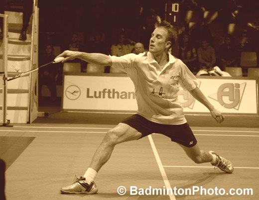 26.10.2008. Niedzielny finał singla mężczyzn w Odense rozegrał się w wyłącznie duńskim gronie. Na korcie spotkali się Peter Gade (fot.) oraz Joachim Persson. Gade szybko wraca do formy po wielomiesięcznej przerwie spowodowanej kłopotami zdrowotnymi. Rozstawiony z nr. 7. Duńczyk gładko pokonał w ćwierćfinale drugiego singlistę turnieju Chen Jina. Jeszcze szybciej Gade odprawił swojego rodaka — Kennetha Jonassena, pozwalając mu zdobyć jedynie 9 punktów w drugim secie. W finale Wyspiarz spotykał się ze swoim dobrym znajomym — Joachimem Perssonem. Jak się okazało nie był on trudnym przeciwnikiem dla Gadego, który po dwóch setach zdobył swój pierwszy od niemal dwóch lat złoty medal na turnieju super serii. Po meczu Gade promieniał: Jestem w świetnej formie. To dla mnie duże szczęście, móc udowodnić, że mogę wygrywać Super Serię. Nie ma dla mnie również znaczenia, że turniej nie był tak silnie obsadzony jak inne, skoro pokazałem, że można pokonać takich zawodników jak Chen Jin. Wydaje się, że Gade, który zapowiadał kiedyś, że po IO w Pekinie być może uda się na emeryturę, zrezygnował z tego pomysłu. Powoli wykruszają się natomiast inni duńscy zawodnicy. Jonassen wkrótce dołączy do grupy trenerów kadry, gdzie będzie się zajmował szkoleniem kobiet, podczas gdy na emeryturę pod koniec tego roku wybiera się Steen Pedersen.