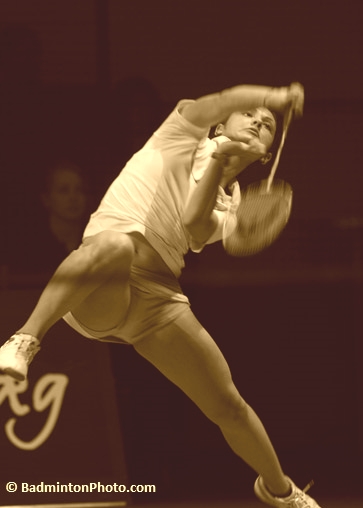 27.04.2009. W poniedziałek w bawarskim miasteczku Landshut odbył się mecz towarzyski Niemcy-Polska. Spotkanie zorganizowane zostało przez miejscowy klub badmintonowy PostSV. Niestety, odmłodzona kadra biało-czerwonych nie była w stanie sprostać składowi wystawionemu przez naszych zachodnich sąsiadów, przegrywając cztery z pięciu poniedziałkowych meczów. Na wyróżnienie zasługuje gra Olgi Konon (fot.), która pokonała w trzysetowym pojedynku udającą się na sportową emeryturę Xu Huaiwen.