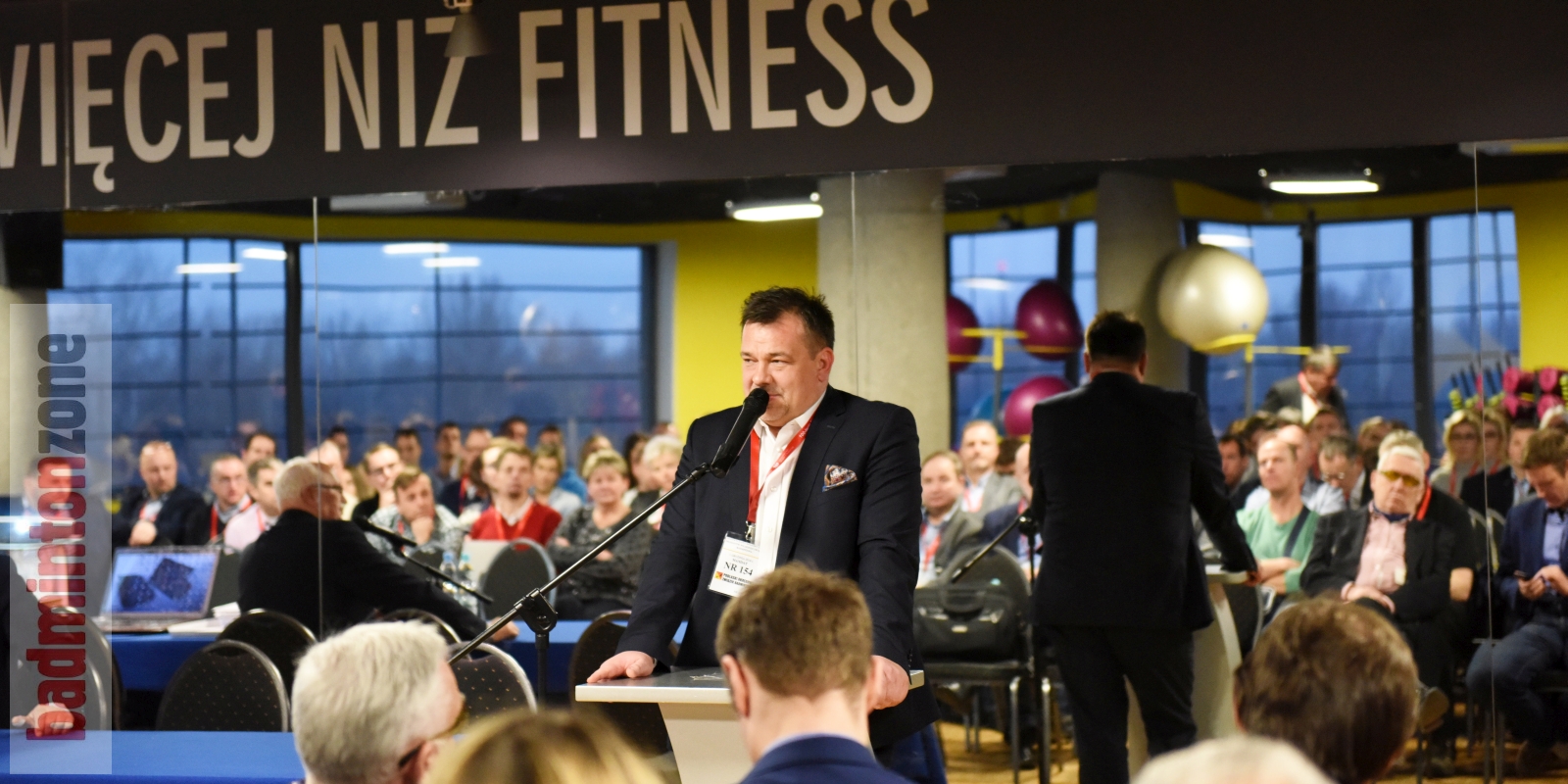 Zob. np.: Paragrafy w akcji. Zjazd delegatów przeciwko zarządowi PZBad. W KRS widnieją obecnie nazwiska członków zarządu: Marek Krajewski, prezes; Arkadiusz Kawecki, członek zarządu; Lech Szargiej, wiceprezes zarządu; Katarzyna Ziębik, członek zarządu; Marek Krawczyk, członek zarządu; Tomasz Poręba, wiceprezes zarządu. Ponadto członków komisji rewizyjnej: Tomasz Pyć, Marek Rosa, Andrzej Rachwał. Na fot. Marek Krajewski przemawia na zjeździe 1 grudnia 2018 r. w Warszawie. Fot. © BadmintonZone.pl jr |