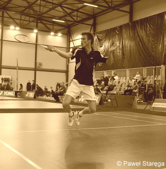 20.09.2009. W ostatnim spotkaniu 1. kolejki ekstraklasy badmintona, wicemistrz Polski UKS Hubal Białystok pokonał na własnym terenie AZS AGH Kraków 4:1. Jedyną niespodziankę stanowiła strata seta przez Michała Rogalskiego (fot.) w konfrontacji z Dariuszem Janikiem. Oba zespoły grały w swoich typowych składach z ubiegłego sezonu. Po pierwszej rundzie Hubal zajmuje drugie miejsce w tabeli mając jedno zwycięstwo, podobnie jak SKB Litpol Malow Suwałki i Technik Głubczyce. UKS Hubal Białystok — AZS AGH Kraków 4:1 Jan Rudziński/ Ewa Piotrowska — Damian Pławecki/ Barbara Kulanty 14:21 18:21, Michał Rogalski — Dariusz Janik 21:15 14:21 21:11, Alesja Zajcewa — Katarzyna Płonka 21:10 21:7, Rudziński/ Rogalski — Pławecki/ Maciej Piekło 21:13 21:15, Ewa Jarocka/ Zajcewa — Katarzyna Wójcik/ Kulanty 21:16 21:18. Fot. © Paweł Staręga, BadmintonZone.pl (archiwum) jr |