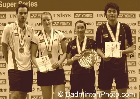 27.09.2009. Nieoczekiwanym zwycięstwem rezerwowej pary z Tajlandii zakończył się w niedzielę turniej Japan Open. To pierwszy znaczący sukces pary Songphon Anugritaywon/ Kunchala Voravichitchaikul (fot.). Azjaci ograli nie byle kogo, bo rozstawionych z nr. 6. Joachima Fischera Nielsena / Christinnę Pedersen. W pierwszym secie wzięło górę doświadczenie Duńczyków, ale dwa pozostałe — łącznie z niebywale emocjonującym, ostatnim setem, gdzie grano na przewagi — zdominowali młodzi badmintoniści z Tajlandii. Po meczu Anugritaywon odtwarzał nastroje podczas gry: - Byliśmy bardzo zdenerwowani w pierwszym secie. Próbowaliśmy grać najlepiej, jak potrafimy, ale gra pod presją spowodowała, że popełnialiśmy masę błędów technicznych. W tym momencie pokonanie nas nie stanowiło żadnego problemu dla Duńczyków. Po pierwszym secie nasz trener ustawił nas i nerwy trochę opadły. Skupiliśmy się na tym, aby iść punkt po punkcie do przodu. Odnaleźliśmy w sobie nową determinację, która pozwoliła lepiej wykorzystać nasze umiejętności. Skromnie podsumował również wygraną: To było dla nas wspaniałe zwycięstwo, wiele osób z publiczności uśmiechało się do nas. Będziemy teraz ciężko trenować, aby utrzymać formę i dorównać naszej wspaniałej parze seniorów Prapakamol / Thungthogkam.