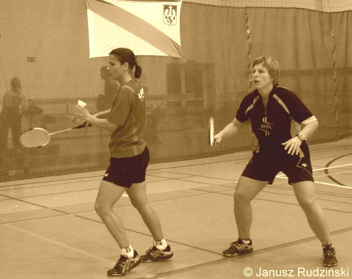 19.12.2009. W jedynym rozegranym w sobotę spotkaniu szóstej rundy polskiej ekstraklasy AZS AGH Kraków po raz kolejny nie zdołał odnieść pierwszego zwycięstwa w sezonie. Na własnym terenie uległ Hubalowi Białystok 1:4. Oba zespoły wystąpiły w osłabionych składach. Goście przyjechali bez Alesji Zajcewej, która w sobotę grała w półfinale międzynarodowych mistrzostw Turcji; zresztą bez powodzenia, gdyż rozstawiona z numerem 1 w mikście (z Aleksiejem Konachem) przegrała w trzysetowym starciu z parą duńską — Tore Vilmhelsen/ Sara Thygesen. Wcześniej Zajcewa odpadła w ćwierćfinale singla — gdzie była rozstawiona z numerem 6 — ulegając w dwóch setach bardzo mocnej tureckiej Chince Shuang Li. Gospodarze grali natomiast bez Damiana Pławeckiego uczestniczącego w szkoleniu trenerskim. Jedyny punkt dla gospodarzy zdobył rutynowany debel żeński, Barbara Kulanty/ Katarzyna Wójcik (fot.), pokonując łatwo 18-latki z Białegostoku, Ewę Piotrowską i Edytę Tarasewicz. AZS AGH Kraków — UKS Hubal Białystok 1:4 Katarzyna Płonka — Ewa Jarocka 7:21 11:21, Dariusz Janik — Michał Rogalski 10:21 14:21, Barbara Kulanty/ Katarzyna Wójcik — Ewa Piotrowska/ Edyta Tarasewicz 21:6 21:17, Kornel Apostolik/ Robert Gałek — Rogalski/ Jan Rudziński 12:21 17:21, Maciej Piekło/Kulanty — Rudziński/Jarocka 10:21 16:21. Fot. © Janusz Rudziński, BadmintonZone.pl jr |