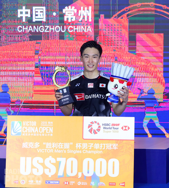 Japończyk Kento Momota (na fot. tryumf na Victor China Open 2019 HSBC BWF World Tour Super 1000) udowadnia, że na badmintonie da się wzbogacić. Na samych wygranych w obecnym roku kalendarzowym zarobił przeszło prawie dwa miliony złotych.