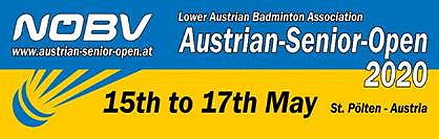 Zawody odbędą się w stolicy Dolnej Austrii, St. Pölten (ok. 70 km od Wiednia). Organizuje je od piątku 15 do niedzieli 17 maja 2020 roku Związek Badmintona Dolnej Austrii. Turniej będzie rozgrywany austriackim systemem grupowo-pucharowym, który niewiele różni się od polskiego i gwarantuje w założeniu rozegranie co najmniej dwóch meczów. Turniej rozpocznie się w piątek od gier pojedynczych o 13.30. W sobotę kontynuacja singli oraz deble i ewentualnie miksty (początek 9.30). W niedzielę gry mieszane od 9.30. Można startować we wszystkich trzech grach. Wpisowe za pierwszą grę wynosi 25 euro od uczestnika, za każdą następną po 10 euro. Zob. komunikat turnieju (PDF). Zob. wyniki poprzednich mistrzostw. 2. otwarte mistrzostwa Austrii seniorów w badmintonie. 2nd Austrian Senior Open. 15-17 maja 2020. Sankt Pölten (Austria). Zob. Tournamentsoftware,com. Zob. komunikat turnieju. Strona turnieju. Facebook. jr, mat. organizatora |