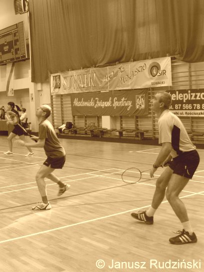 W półfinale "Północ" Akademickich Mistrzostw Polski w badmintonie (strefa A — z województw: zachodniopomorskiego, pomorskiego, kujawsko-pomorskiego, warmińsko-mazurskiego, podlaskiego, lubelskiego, mazowieckiego i łódzkiego) zakończyły w niedzielę rywalizację reprezentacje 15 uczelni. Borykająca się ze złą opinią Akademia Humanistyczno-Ekonomiczna w Łodzi (zob. tekst Lawina skarg na Akademię Humanistyczno-Ekonomiczną na portalu "Gazeta.pl") może się za to poszczycić kolejnym sukcesem w badmintonie. Wygrała półfinał północny AMP i jest murowanym faworytem kwietniowego finału ogólnopolskiego w Krakowie. Wyniki spotkań półfinałowych (7.03.2010) AHE Łódź — UWM Olsztyn 4:0 Kamila Augustyn — Aneta Walentukanis 21:8 21:10, Rafał Hawel — Piotr Kowenicki 21:9 21:12, Aleksandra Walaszek/ Agnieszka Wojtkowska — Magdalena Jaworek/ Walentukanis 21:10 21:19, Łukasz Moreń/ Michał Rogalski — Lech Dryżałowski/ Piotr Kowenicki 21:14 21:15, Moreń/ Nadia Kostiuczyk — Kamil Raszkiewicz/ Klaudia Rogalska, Wojtkowska — Jaworek i Rogalski — Arkadiusz Smoliński — nie rozgrywano. WSFiZ Białystok — UAM Poznań 4:1 Anna Narel — Marlena Flis 21:7 21:4, Marcin Dernoga — Karol Kowalewski 21:5 21:9, Magda Dakowicz/ Anna Narel — Flis/ Mariola Grządzielska 14:21 12:21, Adam Cwalina/ Paweł Lenkiewicz — Karol Kowalewski/ Piotr Szkudlarczyk 21:8 21:9, Cwalina/Dakowicz — P. Szkudlarczyk/ Patrycja Leik 21:7 21:5, Izabela Żakowska — Leik i Lenkiewicz — W. Szkudlarczyk — nie rozgrywano. Wynik spotkania finałowego (7.03.2010) AHE Łódź — WSFiZ Białystok 4:1 Wojtkowska — Narel 13:21 18:21, Hawel — Dernoga 21:10 21:11, Augustyn/Kostiuczyk — Narel/Żakowska (fot. 2.) 21:9 21:7, Hawel/Moreń — Cwalina/Lenkiewicz 21:12 21:19, Rogalski/Kostiuczyk — Lenkiewicz/Dakowicz 21:15 21:12, Walaszek — Żakowska i Maciej Kowalik — Daniel Mitroszewski — nie rozgrywano. Wyniki reprezentacji Uniwersytetu Warszawskiego (7.03.2010) UW — WSEI Warszawa 4:0 Anna Szymańska — Katarzyna Bojarska 21:2 21:0, Marcel Wójtowicz — Adrian Baj 21:7 21:7, Marta Kolimaga/ Magdalena Zachewicz — Ewa Barasiewicz/ Anna Ługowska 21:8 21:6, Jacek Jakubowski/ Wójtowicz — Baj/ Bartosz Ogrodniczuk 21:7 21:8, Jakubowski/ Anna Najdienowa — Ługowska/ Marcin Kuźma, Najdienowa — Barasiewicz i Pawełczyk — Ogrodniczuk — nie rozgrywano. O miejsce IX: UW — SGH 4:0 Szymańska -Aleksandra Przepióra 21:0 21:0, Jan Olearczuk — Jakub Wilkos 21:14 21:16, Najdienowa/Kolimaga (fot. 3.) — Anna Prazner/ Przepióra 21:9 21:7, Jakubowski/Olearczuk — Michał Cieślukowski/ Wojciech Cipielewski 21:14 21:18, Jakubowski/Zachewicz — Wilkos/Suwald, Najdienowa — Suwald i Wójtowicz — Cipielewski — nie rozgrywano. Końcowa kolejność jest następująca: 1. Akademia Humanistyczno-Ekonomiczna w Łodzi 2. Wyższa Szkoła Finansów i Zarządzania w Białymstoku 3-4. Uniwersytet im. Adama Mickiewicza w Poznaniu 3-4. Uniwersytet Warmińsko-Mazurski w Olsztynie (fot. 4.) 5. Uniwersytet Gdański 6. Politechnika Łódzka 7. Akademia Wychowania Fizycznego w Warszawie 8. Politechnika Warszawska 9. Uniwersytet Warszawski 10. Szkoła Główna Handlowa w Warszawie 11. Politechnika Poznańska 12. Wyższa Szkoła Ekonomiczno-Informatyczna w Warszawie 13. Akademia Leona Koźmińskiego w Warszawie 14. Państwowa Wyższa Szkoła Zawodowa w Lesznie 15. Szkoła Główna Gospodarstwa Wiejskiego w Warszawie. Do finału ogólnopolskiego zakwalifikowała się pierwsza ósemka uczelni. Były to pierwsze zawody badmintonowe w całkowicie odnowionej hali OSiR w Suwałkach. Do estetycznej scenerii dostroili się organizatorzy, którzy starali się zadbać o wiele pozytywnych szczegółów. Takich m.in. jak sympatyczna ceremonia otwarcia ze wspomnianym wcześniej udziałem Wojciecha Fortuny i upominkami dla startujących ekip. Wśród uczestników imprezy szczególnie wyróżniała się reprezentacja warszawskiej AWF (fot. 5.), która żywo i zabawnie dopingowała swoich zawodników. Zobacz również niżej "NA POŁUDNIU GOSPODARZY AGH, A RZĄDZĄ AWF-Y" (7.03.2010) oraz "AHE Z ŁODZI NIE ZAWODZI" (6.03.2010). Fot. © Janusz Rudziński, BadmintonZone.pl (live) jr |