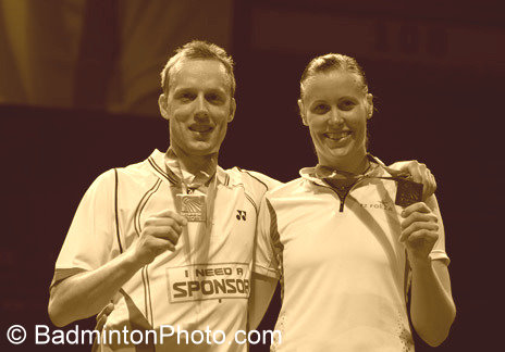 18.04.2010. Aktualni mistrzowie świata, Duńczycy Thomas Laybourn i Kamillą Rytter Juhl (fot.), zdobyli do kompletu tytuł mistrzów Europy, pokonując w niedzielnym finale Roberta Mateusiaka i Nadię Kostiuczyk. Polakom zabrakło koncentracji na początku pierwszego seta. Zaczęło się od błędów Mateusiaka, który źle ocenił celną lotkę przeciwników, a następnie zagrał w siatkę. Punkty Biało-Czerwoni zdobywali głównie po niedokładnych atakach Laybourna, ale sami tracili ich więcej, przegrywając do przerwy 5:11. Po minutowej przerwie Duńczycy utrzymują przewagę, ale wydaje się, że Polacy nabiorą wiatru w żagle po fantastycznej wymianie, kiedy Nadia broni serię smeczów i Laybourn psuje kolejny atak. Jest już tylko 10:14. Niestety seria błędów Nadii, a potem "Zico" pozwala Duńczykom odskoczyć na 18:12. Trwa jednak zażarta walka, w której Biało-Czerwoni popisują się świetną obroną, pomagają im błędy Duńczyków i trochę szczęścia. Wprawdzie mistrzowie świata mają lotkę setową po ataku Laybourna na Mateusiaka przy 20:17, ale za chwilę Kostiuczyk niszczy Duńczyka smeczem po przekątnej i po kolejnej świetnej akcji jest już tylko 19:20. Niestety "Zico" źle serwuje na Laybourna, który najpierw przechodzi do ataku returnem, a następnie dobija lotkę wystawioną przez Polaka. Mimo świetnej gry w końcówce pierwszej partii polski mikst przegrywa ją na skutek przespanego początku spotkania. Tego błędu Biało-Czerwoni nie powtarzają w drugiej odsłonie meczu i przeważają w niej niemal cały czas. Duńczykom udaje się wprawdzie wyrównać na 17:17 i 18:18, ale znakomita gra Polaków zapewnia "Zico" i Nadii wygraną do 18. Pierwsza połowa trzeciego seta trochę przypomina pierwszą partię. Duńczycy przeważają, ale Polacy nie dają im odskoczyć na większy dystans, głównie dzięki znakomitej grze Kostiuczyk. Mateusiak popełnia sporo błędów, na szczęście również Laybourn myli się miarę często. Przy stanie 7:9 Nadia fenomenalnie broni smecze Laybourna, ale Robert pakuje lotkę w siatkę i przewaga Skandynawów utrzymuje się. Ostatnim zrywem Polaków jest zniwelowanie różnicy do 12:13. Następuje jednak okres słabszej gry Kostiuczyk, co przynosi od razu fatalne rezultaty. Biało-Czerwoni nie są już w stanie zdobyć ani jednego punktu. Przy pierwszej lotce meczowej Duńczykom udaje się przejść do silnego ataku. Rozpaczliwa defensywa Polaków jest bezskuteczna: Laybourn zbija nie do obrony i może wraz z Kamillą cieszyć się ze zwycięstwa po godzinie gry. Polacy mogą być zadowoleni z obrony pozycji wywalczonej na poprzednich mistrzostwach Europy. Wówczas byli jeszcze bliżej złota, ale wydaje się, że i teraz mogli przechylić szalę zwycięstwa na swoją korzyść. Gdyby — na przykład — w pierwszej partii Mateusiak grał od początku solidniej, można było wygrać w dwóch setach. Indywidualne mistrzostwa Europy w badmintonie. Yonex European Championships 2010, 14-18 kwietnia 2010, Manchester (Anglia). Turniej kategorii Grand Prix Gold. Wyniki na stronie tournamentsoftware.com. Fot. © BadmintonPhoto.com (live) jr |