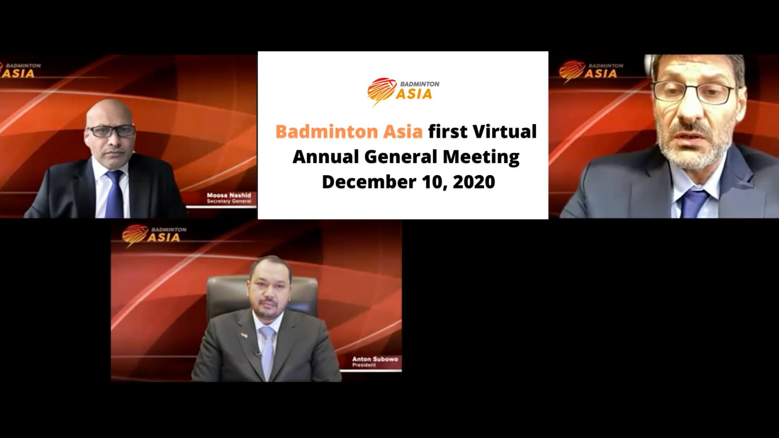 Azjatycka konfederacja kontynentalna, Badminton Asia, odbyła swój — pierwszy w dziejach wirtualny — coroczny walny zjazd delegatów. Stało się to 10 grudnia 2020 r. Zastępcza forma została zatwierdzona przez stowarzyszenia członkowskie w odpowiedzi na pandemię COVID-19.