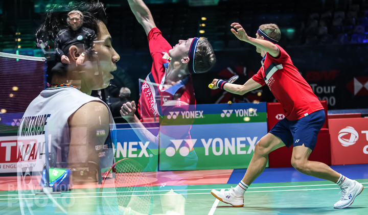 Obrońca tytułu sprzed roku, Duńczyk Viktor Axelsen (fot. 1), musiał się dwoić i troić, bo natrafił na poważny opór w pierwszej rundzie otwartych mistrzostw Anglii w badmintonie (Yonex All England Championships HSBC BWF World Tour Super 1000) ze strony debiutującego w tej imprezie Japończyka Kokiego Watanabe (na fot. 1 z lewej), notowanego obecnie na 41. miejscu rankingu światowego.