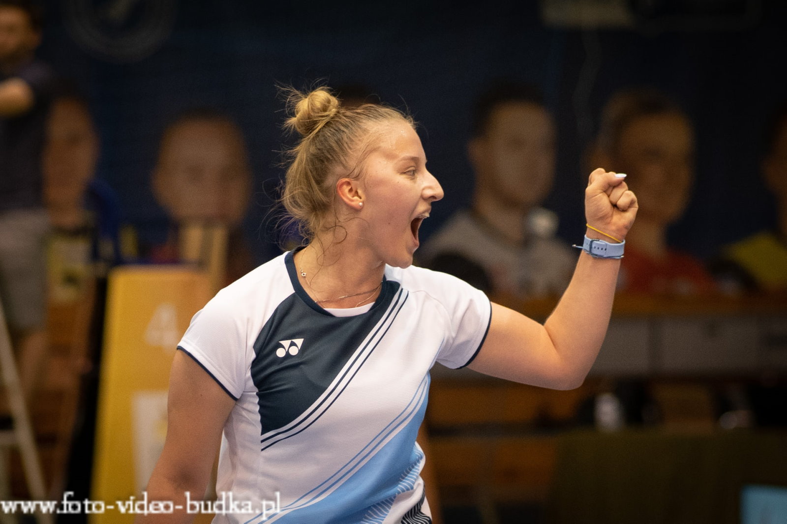 Ostatecznie mistrzami Polski zostali: w grze pojedynczej chłopców – Dominik Kwinta (UKS KSBad Kraków), w grze pojedynczej dziewcząt – Joanna Podedworny (UKS Unia Bieruń), w grze podwójnej chłopców – Maksymilian Danielak i Dawid Perkowski (KKS Ruch Piotrków Trybunalski, UKS Hubal Białystok), w grze podwójnej dziewcząt - Anna Czuchra i Julia Piwowar (UKS Unia Bieruń, BKB Set Mazańcowice) i w grze mieszanej — Arkadiusz Dydyński i Julia Stankiewicz (UKS Hubal Białystok). Warto dodać, że czworo zawodników zostało jednocześnie mistrzami i wicemistrzami Polski. Byli to: Joanna Podedworny, Julia Piwowar, Dominik Kwinta i Maksymilian Danielak. Najlepszym klubem w klasyfikacji punktowej został ABRM Warszawa zaś Śląskie zwyciężyło w rywalizacji województw. Uroczystość rozpoczęcia olimpiady i jej zakończenia uświetnili swoją obecnością między innymi: wicemarszałek województwa łódzkiego Zbigniew Zięba, wiceprezydent Piotrkowa Trybunalskiego Andrzej Kacperek, zastępca dyrektora Departamentu Sportu i Turystyki w Urzędzie Marszałkowskim Województwa Łódzkiego Sławomir Piętakiewicz oraz Zbigniew Świercz, wiceprezes Łódzkiej Federacji Sportu. Wszystkie pojedynki mistrzostw były transmitowane przez kanał Badminton Polska. Warto dodać, że wszyscy uczestnicy mistrzostw otrzymali w ramach pakietów startowych, oprócz tradycyjnych „olimpijskich” koszulek i ręczników, okolicznościową i ściśle limitowaną kartkę pocztową wydaną przez Pocztę Polską z okazji piotrkowskich mistrzostw. - Oprócz niezaprzeczalnego sukcesu organizacyjnego zawodów na podkreślenie zasługuje również fakt — komentuje dla BadmintonZone.pl lekarz zawodów Wojciech Ossowski — że na zaproszenie organizatorki Doroty Danielak tłumnie odpowiedzieli prawie wszyscy polscy sędziowie międzynarodowi. Tak doborowej obsady sędziowskiej nie miały żadne zawody badmintona w Polsce, włącznie z międzynarodowymi od co najmniej 5 lat. Według sędziego głównego zawodów Leszka Rorata, nie wpłynął żaden protest ani nie złożono żadnej skargi na pracę kogokolwiek z sędziów. Sędziowie nie ukarali także nikogo z zawodników ani jedną karą — podkreślił Ossowski, skądinąd sędzia Światowej Federacji Badmintona (BWF). Wyniki finałów (29.06.2021) Singel mężczyzn Dominik Kwinta (KSBad Kraków, 3) — Maksymilian Danielak (Ruch Piotrków Trybunalski, 4) 21:8 21:10 (0:22). Singel kobiet Joanna Podedworny (Unia Bieruń, 1) — Julia Piwowar (BKB Set Mazańcowice, 3) 21:11 21:19 (0:28). Debel mężczyzn Maksymilian Danielak, Dawid Perkowski (Ruch Piotrków Trybunalski, Hubal, 5) — Bartosz Krajewski, Dominik Kwinta (ABRM Warszawa, KSBad Kraków, 6) 21:9 21:17 (0:28). Debel kobiet Anna Czuchra, Julia Piwowar (Unia Bieruń, BKB Set Mazańcowice, 1) — Marta Styczyńska, Aleksandra Węsławowicz (ABRM Warszawa, 7) 23:25 21:15 21:11 (0:47). Mikst Arkadiusz Dydyński, Julia Stankiewicz (Hubal Białystok, 1) — Piotr Liszka, Joanna Podedworny (Unia Bieruń, 2) 20:22 21:18 22:20 (1:03). Zob. też: Komu listonosz doręczy kartę pocztową z olimpiady? 27. Ogólnopolska Olimpiada Młodzieży w badmintonie (mistrzostwa Polski juniorów młodszych — U17). 27-29 czerwca 2021. Piotrków Trybunalski. Hala OSiR Relax, ul. Stefana Batorego 8. Wyniki w serwisie tournamentsofware.com. Fot.: mat. organizatora jr, mat. organizatora |