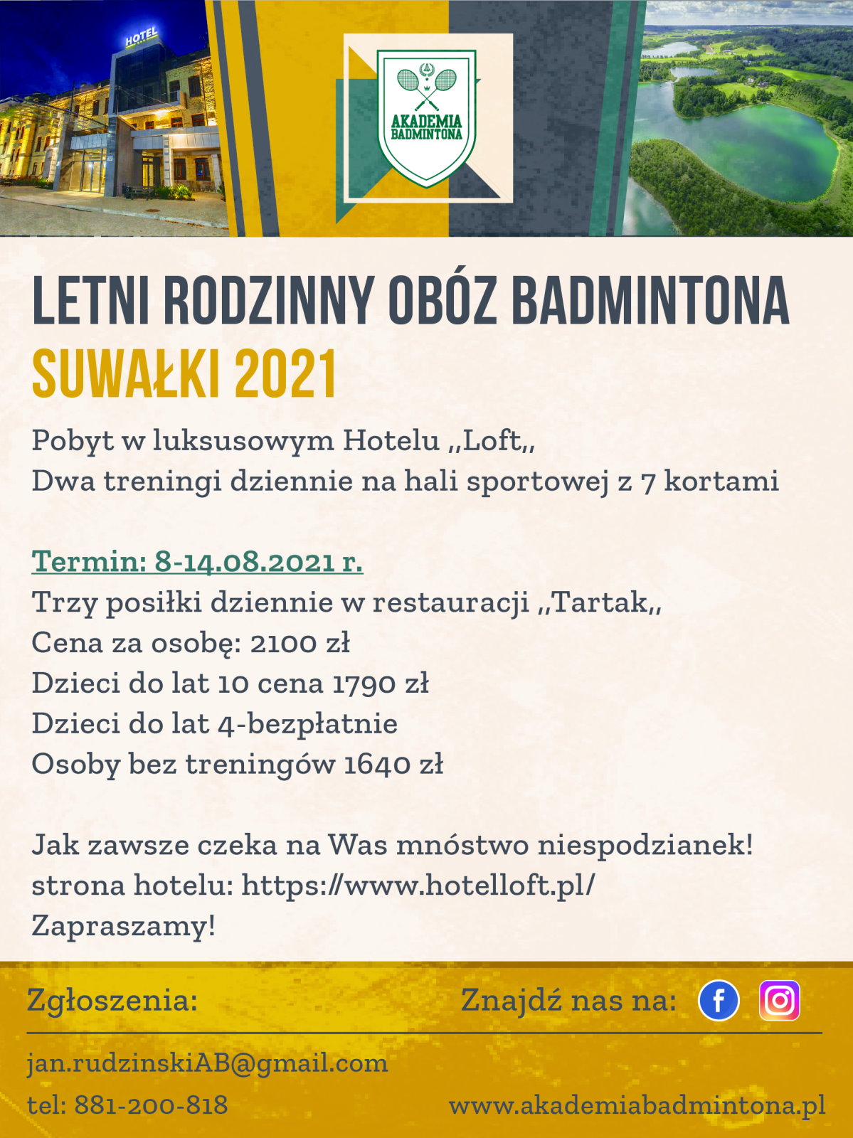Akademia Badmintona Warszawa zaprasza na obóz do stolicy polskiego badmintona – Suwałk!