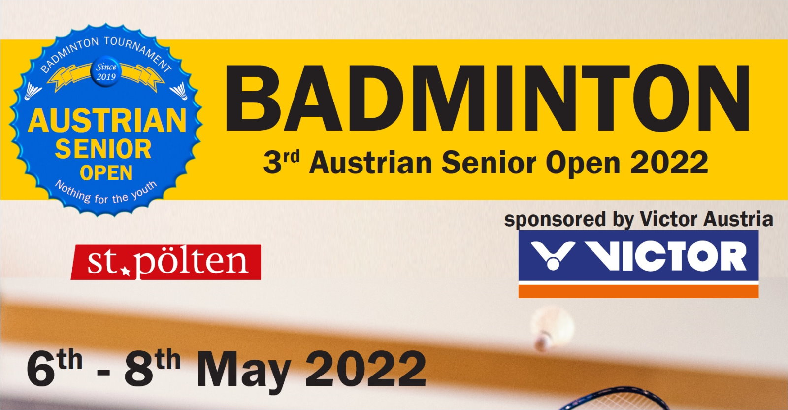Już tylko parę miesięcy dzieli nas od trzecich otwartych mistrzostw Austrii seniorów w badmintonie (3. Austrian Senior Open), które odbędą się w międzynarodowej obsadzie 6-8 maja 2022 roku w St. Pölten. Zapewne na starcie zjawią się także Polacy.