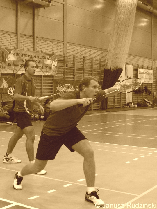Wszystko wskazywało na to, że nie ma najmniejszych szans na powtórzenie sukcesu sprzed dwóch tygodni, kiedy to zawodnicy z Częstochowy pokonali w rozgrywkach ligowych słupskiego Piasta, odnosząc tym samym pierwsze w tym sezonie zwycięstwo. W sobotę okazało się jednak, że wicelider ekstraklasy wystąpił w znacznie osłabionym składzie, bez większości swoich topowych zawodników. Wedle oceny trenera Kolejarza, Tadeusza Brzozowskiego, częstochowianie mieli nawet szansę na wygraną. Zespół dotknęła jednak prawdziwa fala egipskich plag, skutecznie niwecząc szansę na poprawę lokaty w tabeli. Ostatecznie skończyło się na 4:2 dla Technika. Ze względu na turniej w stolicy z sobotniej gry zmuszony był zrezygnować Maciej Ociepa (na fot. na 2. planie). Jednak w ostatniej chwili turniej... został odwołany. Maciej Ociepa nie zdołał już jednak dotrzeć do Głubczyc. Już w czasie spotkania okazało się natomiast, że wystawiony do miksta Adam Sowa gra bez ważnej licencji — jej termin ważności upłynął zaledwie tydzień wcześniej. Nie wiadomo jeszcze, jakie konsekwencje dla drużyny będzie miało to niedopatrzenie. Trener Brzozowski ma jednak nadzieję, że sprawa zakończy się pomyślnie dla jego podopiecznych, o czym przeczytać można dzięki serwisowi internetowemu "wczestochowie.pl": Nie wiem, jak skończy się ta sprawa. W regulaminie nie znalazłem punktu, który mówiłby, że z powodu braku odnowionej licencji zawodnika, wynik spotkania będzie zweryfikowany na niekorzyść drużyny, w której gra ten badmintonista. Gospodarze okazali się zdecydowanie lepsi w singlu i deblu kobiet oraz mikście. Dla gości punktowali natomiast singliści: Michał Walentek i Marcin Ociepa. Najbardziej zaciętym pojedynkiem spotkania był debel mężczyzn, w którym zmierzyły się pary Dawid Grzegorzak/ Przemysław Szydłowski — Marcin Ociepa (na fot. na 1. planie)/ Michał Walentek. Technik Głubczyce — Kolejarz Przemysłówka 4:2 (11.02.2012) Anna Serafin — Kinga Rudolf 21:13 21:19 Michał Polak — Michał Walentek 4:21 13:21 Anna Serafin/ Wojtkowska — Kinga Rudolf/ Agata Stelmaszczyk 21:12 21:19 Dawid Grzegorzak/ Mateusz Szydłowski — Marcin Ociepa/ Michał Walentek 21:19 15:21 21:18 Mateusz Szydłowski/ Wojtkowska — Adam Sowa/ Agata Stelmaszczyk 21:12 21:15 Dawid Grzegorzak — Marcin Ociepa 18:21 10:21. Fot. © Janusz Rudziński, BadmintonZone.pl (archiwum) pola |