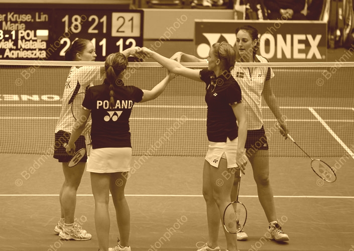 W czwartek Polaków, którzy obecnie prowadzą w tabeli, czeka mecz o awans z najgroźniejszymi rywalami grupowymi — Hiszpanami. Ci ostatni dysponują dwoma bardzo silnymi singlistami (Pablo Abian, Ernesto Velazquez), którzy są w stanie wygrać z naszymi reprezentantami (co nie znaczy, że im to się uda). Trzeciego — zwycięskiego — punktu nasi rywale mogą szukać w innych grach: w deblu, w którym zestawiają zwykle razem wspomnianych singlistów lub w trzecim singlu. Faworytem będą jednak prawdopodobnie Polacy (potwierdzi się to po ujawnieniu składów), którzy powinni szukać dwóch pewnych punktów w deblu, a trzeciego (lub więcej) w singlach. Polska — Litwa 5:0 (15.02.2012) Przemysław Wacha — Povilas Bartusis 21:8 21:9 (0:18), Hubert Pączek — Edgaras Slusnys 21:10 21:7 (0:17), Adrian Dziółko — Alan Plavin 21:10 21:7 (0:17), Łukasz Moreń/ Wojciech Szkudlarczyk (fot.) — Donatas Narvilas/ Edgaras Slusnys 21:11 21:12 (0:29), Adam Cwalina/ Michał Łogosz — Povilas Bartusis/ Alan Plavin 21:11 21:14 (0:17). DUNKI W ZAPASOWYM SKŁADZIE 15.02.2012. W drugim dniu Mistrzostw Europy Drużyn Męskich i Żeńskich badmintonistki z Polski zmierzyły się z obrończyniami tytułu — Dunkami. Przeciwniczki biało-czerwonych pozwoliły odpocząć swoim topowym zawodniczkom — Tine Baun, Christinnie Pedersen oraz Kamilli Rytter Juhl, wiedząc, że nawet w zapasowym składzie są w stanie pokonać Polki. Nasze badmintonistki wystąpiły natomiast bez Kamili Augustyn. Miłą niespodziankę sprawiła Anna Narel, pokonując w trzech setach Camillę Sorensen. Dużą wolą walki wykazały się również Natalia Pocztowiak i Agnieszka Wojtkowska (fot.), urywając seta duetowi Line Damkjaer Kruse/ Marie Roepke. W trzech pozostałych grach zdecydowanie dominowały Dunki. Środowe spotkanie z Danią było ostatnim dla biało-czerwonej drużyny kobiet. Nasze badmintonistki zajęły ostatnie miejsce w grupie po przegranej z Hiszpanią i Danią. Polska — Dania 1:4 (15.02.2012) Agata Świst — Karina Jorgensen 11:21 16:21 (0:23), Anna Narel — Camilla Sorensen 15:21 21:15 21:19 (0:46), Natalia Pocztowiak — Line Kjaersfeldt 16:21 17:21 (0:24), Anna Narel/ Agata Świst — Maria Helsbol/ Camilla Sorensen 19:21 14:21 (0:26), Natalia Pocztowiak/ Agnieszka Wojtkowska — Line Damkjaer Kruse/ Marie Roepke 21:18 11:21 12:21 (0:52) Mistrzostwa Europy Drużyn Męskich i Żeńskich w badmintonie 2012. European Men's & Women's Team Championships 2012. 14-19 lutego 2012, Amsterdam (Holandia). Sporthallen Zuid. Zobacz również wyniki meczów na tournamentsoftware.com. Fot. Yohan Nonotte © BadmintonPhoto.com (live) jr (1.), pola (2.) |