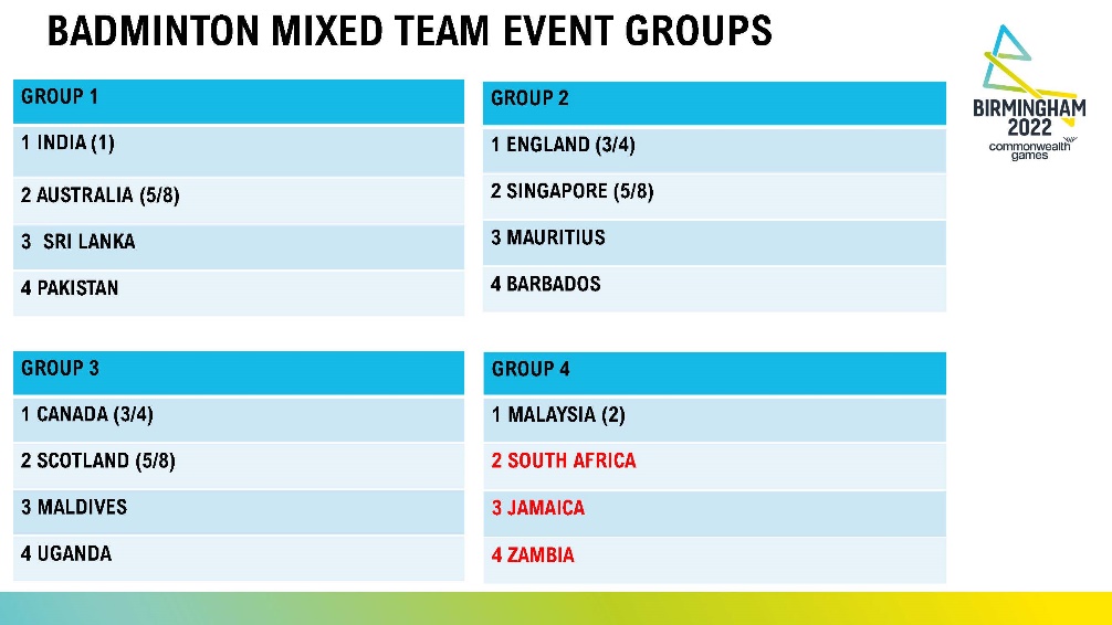 Wtedy właśnie w finale turnieju drużyn mieszanych Srikanth Kidambi (fot. live z Commonwealth Games 2018), bohater tegorocznego Pucharu Thomasa i obecnie urzędujący wicemistrz świata, a wówczas numer dwa listy światowej, pokonał słynnego Malezyjczyka Lee Chong Wei'a, wicemistrza olimpijskiego, co dało jeden z trzech zwycięskich punktów Indiom. Co prawda potem Chong Wei zrewanżował się Kidambiemu w finale turnieju indywidualnego. Broniące tytułu Indie będą musiały zmierzyć się z Australią, Sri Lanką i Pakistanem w grupie 1 turnieju drużyn mieszanych XXII Igrzysk Wspólnoty Narodów. Zawody badmintonowe na Igrzyskach Wspólnoty Narodów, składające się z zawodów drużyn mieszanych, a następnie zawodów indywidualnych, odbędą się w Birmingham w dniach 29 lipca — 8 sierpnia 2022 roku. Finał turnieju drużyn mieszanych odbędzie się 2 sierpnia. Losowanie zostało przeprowadzone w marcu w Birmingham. Nigeria wycofała się na początku maja, a jej miejsce zajęła Zambia, co właśnie teraz ostatecznie potwierdzono. Każde spotkanie w turnieju drużynowym składa się z meczów w systemie pięciu gier dającym zwycięstwo przy co najmniej trzech wygranych pojedynkach (best-of-five), które sprawdzają ogólną siłę drużyny. Pięciokrotni mistrzowie, Malezyjczycy, którzy w finale ostatniej edycji w Gold Coast przegrali z Indiami, trafili do grupy 4 z RPA, Jamajką i Zambią. Anglia, zwycięzcy ośmiu pierwszych edycji turnieju drużynowego, począwszy od 1966 roku, trafili do grupy 2 z Singapurem, Mauritiusem i Barbadosem, natomiast w grupie 3 znalazły się: mocarstwo panamerykańskie — Kanada — oraz Szkocja, Malediwy i Uganda. Prezes BWF Poul-Erik Høyer przekazał uczestnikom i organizatorom najlepsze życzenia. Igrzyska Brytyjskiej Wspólnoty Narodów mają wyjątkowy charakter. Występują w nich tradycyjne potęgi badmintona, ale także drużyny z nowszymi tradycjami badmintonowymi, dzięki czemu istnieje wspaniała różnorodność stylów i podejścia do zawodów - powiedział Høyer, dodając: Wszystkim startującym drużynom życzę powodzenia. Matt Kidson, dyrektor ds. sportu, powiedział: Dzięki losowaniu zawodów drużyn mieszanych w badmintonie jesteśmy o krok bliżej do Igrzysk Wspólnoty Narodów w Birmingham w 2022 roku. To będą naprawdę pasjonujące zawody, a my nie możemy się doczekać tych 11 dni badmintona. 22. Igrzyska Wspólnoty Narodów. XXII Commonwealth Games. Turniej drużyn mieszanych i turniej indywidualny w badmintonie. 29 lipca — 8 sierpnia 2022. Birmingham (Wielka Brytania), Hala NEC. Fot. Luis Veniegra © BadmintonPhoto.com (archiwum) jr, BWF |