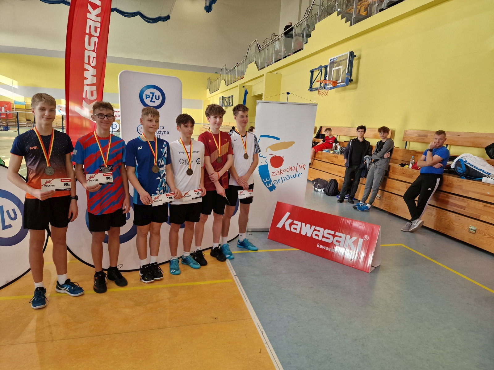 Tu początek gier nastąpił w sobotnie — 29 X — przedpołudnie, a nie w piątkowe popołudnia, jak zazwyczaj to bywało. Wprawdzie nowe zmiany regulaminowe taki właśnie wariant wskazują organizatorom jako docelowy, ale jeszcze do początku 2023 roku jest on fakultatywny. Toteż na razie, w praktyce, inne rozegrane już turnieje bieżącego sezonu kończyły się w niedziele. Jednak uczciwie należy przyznać, że akurat termin tegorocznego XIX Warszawskiego Otwartego Festiwalu Badmintona sprzyjał przyjęciu takiego rozwiązania terminowego: 29 — 31 X zamiast dotychczas klasycznego: piątek 28 X — niedziela 30 X. Bowiem poniedziałek 31 X był dla chyba niemal wszystkich szkół w kraju dniem wolnym z racji przypadającego dzień później święta 1 XI. Tym razem cały turniej był nieco skromniejszy pod względem liczby startujących niż niemal wszystkie poprzednie, bo liczba zgłoszonych graczy wyniosła niepełne dwie setki. Choć liczba reprezentowanych klubów nie zmniejszyła się i w tym roku też wyniosła ponad pięć dziesiątek. Również zapoczątkowana na II Warszawskim Festiwalu w 2005 roku tradycja udziału zawodników przyjeżdżających zza granicy, została podtrzymana. Szczególnie znamienne było to, że mogła przyjechać ekipa - z górą dziesięcioosobowa — z Ukrainy, a konkretnie: ze Lwowa. Kontakt z tamtejszymi badmintonistami organizator Warszawskich Festiwali Badmintona — Klub "Harcownik" utrzymuje od lat kilkunastu i wielokrotnie lwowscy zawodnicy startowali na tym turnieju w Warszawie. Niektórzy stali się wręcz naszymi "kultowymi" zawodnikami ukraińskimi, startując w Warszawie wiele razy od lat najmłodszych – począwszy od wieku lat 10 w 2009 roku do ostatniego roku możliwego, by zagrać, tj. do ostatniego rocznika juniora w wieku lat 19 w 2018 roku. Ale tym razem z powodu sytuacji wojennej w Ukrainie, wyprawa taka dla zawodników i trenerów lwowskich musiała wiązać się z o wiele większym wysiłkiem i niepewnością. Dlatego trzeba wyrazić wielkie podziękowania i szacunek dla nich. Cały turniej zorganizowany został w tych samych obiektach, w których odbywał się już wiele razy w latach poprzednich, na terenie dzielnicy Warszawa — Wesoła. Kategorie juniorów (U-19) i młodzików (U-15) grały w dużej hali przy SP 385 na osiedlu Stara Miłosna, a kategoria juniorów młodszych (U-17) w hali mniejszej w SP 172 na osiedlu Zielona. Rozgrywki w SP 172 były już trzeci rok z rzędu poświęcone pamięci wielkiego animatora badmintona w Polsce, założyciela i wieloletniego trenera klubu Dwójka Wesoła działającego przy SP 172 — Andrzeja Janeckiego. Wszyscy zawodnicy i trenerzy przyjezdni zakwaterowani byli tradycyjnie w hotelu "Bella Vista" położonym ok. 700 m od hali głównej. Może i ciekawostką, ale zarazem już wyrazem utrzymania pewnej tradycji występującej od końca zimy tego roku na wielu turniejach europejskich, było uhonorowanie wysiłku Ukrainy w walce przeciw najeźdźcy. Oba korty w strefie centralnej nosiły nazwy miast ukraińskich: "Lwów" i "Winnica" i oznaczone były herbami wraz z oryginalnie — cyrylicą ukraińską — napisaną nazwą (fot. 2). W tym wypadku wybór właśnie tych miast ukraińskich był dla organizatorów nader oczywisty. Przyjazd grywających wielokrotnie na tym warszawskim turnieju zawodników ze Lwowa także w takich niełatwych czasach, tłumaczy chyba wszystko. Natomiast innym ukraińskim miastem, z którego zawodnicy ze swoją charakterystyczną trenerką na czele także przyjeżdżali wielokrotnie, była Winnica. Toteż uhonorowanie obok Lwowa właśnie tego miasta nasuwało się w pierwszym rzędzie jako oczywiste. Wyróżnienie najlepszych zawodników i ekip turnieju nastąpiło nie tylko medalami – zawodników – i statuetkami – klubów. Pierwsza trójka każdej kategorii i rodzaju gry otrzymywała bony na sprzęt i wyposażenie badmintonowe do wyboru, o określonej wartości zależnej od zajętego miejsca. Kluby — pierwsza czwórka — tuby z lotkami. Łączna wartość nagród wyniosła 8,5 tys. zł. Sprzęt i wyposażenie na nagrody zapewniał partner techniczny turnieju, firma Kawasaki — Badminton — Polska (Powerbad). Organizatorem XIX Warszawskiego Otwartego Festiwalu Badmintona U-19/U-17/U-15, w tym Memoriału Pamięci Andrzeja Janeckiego był Środowiskowy Klub Badmintonowy "Harcownik" Warszawa. Sędzią głównym turnieju był Tomasz Rogowski — pierwszy w Polsce, który uzyskał certyfikat Sędziego Głównego Badminton Europe. Organizację turnieju wsparli: partnerzy publiczni: - Ministerstwo Sportu, - Urząd Marszałkowski Województwa Mazowieckiego, - Miasto Stołeczne Warszawa oraz firmy: - General Property, - Specjały Regionalne — Nowy Świat 44, a partnerem i sponsorem technicznym był - Kawasaki Badminton Polska ("POWERBAD"). ____________________________ Medaliści XIX Warszawskiego Otwartego Festiwalu Badmintona Warszawa-Wesoła 29-31 X 2022 ■ KAT. JUNIORÓW (U-19): ︎ Gra pojedyncza dziewcząt: 1. ZUZANNA JAROSZ (AZS UŚ — Katowice) 2. JULIA PAJEK (MKS Orlicz Suchedniów), 3. WIKTORIJA PLETSJUCHOWA (SKB Suwałki), ︎ Gra pojedyncza chłopców: 1. KAJETAN BARANOWSKI (Hubertus Zalesie Górne) 2. IGOR SKOLIMOWSKI (Bursztyn Gdańsk), 3. ŁUKASZ CHUDZIŃSKI (SKB Badminton4all Sulęcin) ︎ Gra podwójna dziewcząt: 1. ANTONINA CYBULKA / WERANIKA STANKIEWICZ (CT Arena Hawel Academy Poznań / SKB Suwałki) 2. NATALIA LENCZEWSKA / WIKTORIJA PLETSJUCHOWA (SKB Suwałki) 3. ANNA KOTLARSKA / MAGDALENA TATOMIR (MKS Garwolin / Chojnik Jelenia Góra) ︎ Gra podwójna chłopców: 1. TOMASZ BUZA / OLAF PYZEL (Milenium Warszawa) 2. JAKUB KNIHINICKI / JAKUB SZACH (Beninca UKS Feniks Kędzierzyn-Koźle / Dwójka Bytów) 3. KAMIL ROMAN / AURELIUSZ TOMASZEWSKI (Kometa Sianów). ︎ Gra mieszana: 1. KAJETAN BARANOWSKI / NATALIA LENCZEWSKA (Hubertus Zalesie Górne / SKB Suwałki) 2. ŁUKASZ CHUDZIŃSKI / WERONIKA ALEKSANDROWICZ (SKB Badminton4all