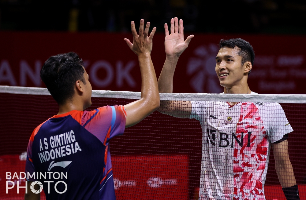 Runda półfinałowa rozpoczęła się w Nimibutr Arena od kolejnej na tym turnieju wewnętrznej chińskiej rozprawy pomiędzy Chen Qing Chen/ Jia Yi Fan a Zhang Shu Xian/ Zheng Yu w deblu kobiet. Obie pary znalazły się w tej samej grupie podczas fazy ”każdy z każdym” w grupach eliminacyjnych, gdzie Chen/Jia wygrały w trzech setach. Po 39 minutach trzykrotne mistrzynie świata Chen Qing Chen i Jia Yi Fan wygrały starcie ze swoimi mniej utytułowanymi rodaczkami Zhang Shu Xian/ Zheng Yu. Co prawda Zhang/Zheng niemal dotrzymywały kroku rywalkom w pierwszej partii, ale w drugiej Chen/Jia całkowicie przejęły inicjatywę. Zhang/Zheng obroniły jeszcze dwie lotki meczowe, by jednak ostatecznie uznać wyższość swoich przeciwniczek. Po dzisiejszym wygranym meczu, Jia zdradziła swoją strategię na jutrzejsze finały: — Musimy się lepiej komunikować niż dzisiaj. Moim zdaniem, kiedy więcej będziemy rozmawiać, tym lepiej będziemy grać. Zawodniczka wyznała również swoją ekscytację faktem startu w finałach — Tak długo jak jesteśmy w finale, chcemy wygrać. Każdy z najlepszej ósemki ma apetyt na wygraną. Siostry Benyapa i Nuntakarn Aimsaard (fot. 2) pokonały parę Jeong Na Eun/ Kim Hye Jeong w drugim półfinale debla kobiet. To już czwarta z rzędu wygrana tajskiej pary z przeciwniczkami z Republiki Korei. Dla Nuntakarn Aimsaard zagranie w jutrzejszym finale to marzenie. Jak sama mówi - Dotarcie do finału było dla nas najbardziej niespodziewane. Spełnieniem marzeń było już samo dotarcie do półfinału. Przyjechałyśmy tutaj i po prostu starałyśmy się grać jak najlepiej. Każdy mecz stanowił dla nas przeszkodę i jesteśmy bardzo szczęśliwe, że jesteśmy w finale. Nie mamy żadnych oczekiwań co do samego finału, ponieważ wszystko do tej pory było wbrew wszelkim oczekiwaniom. Postaramy się po prostu cieszyć się meczem i dobrze się bawić. W singlu kobiet Japonka Akane Yamaguchi pokonała Chen Yu Fei (fot. 3). Dwukrotna czempionka świata zaprezentowała mistrzowski występ przeciwko mistrzyni olimpijskiej, pokonując swoją chińską przeciwniczkę w zaledwie 35 minut. Pierwsza partia była taka, jakiej można by się spodziewać po meczu dwóch najlepszych singlistek na świecie, ale w drugiej Yamaguchi (fot. 4) wygrała 13 z pierwszych 15 punktów i już nie oglądała się za siebie. Tai Tzu Ying pokonała He Bing Jiao. Tai przegrywała z Chinką 5:11 w drugim secie, a następnie wygrała siedem z ośmiu następnych punktów, aby wyrównać stan meczu. He — która wcześniej w fazie grupowej pokonała Tai w dwóch setach — tym razem nie była w stanie się obronić. Numer trzy na świecie z Chińskiego Tajpeju zmierzy się w jutrzejszym finale z Akane Yamaguchi. Tai po swoim meczu wyznała — Dzisiaj grałam spokojnie, w drugim secie nie zmieniłam strategii. Po prostu skupiłam się na swoim. Jutro nie będę próbowała grać szybko jak Yamaguchi, bo to styl Yamaguchi. Rozwiązaniem jest po prostu próba dotrzymania jej kroku i granie swojego badmintona. Aktualni wicemistrzowie świata Mohammad Ahsan i Hendra Setiawan (Indonezja, fot. 5) awansowali do finału po wyjściu z dużych tarapatów i pokonaniu malezyjskiego duetu Ong Yeew Sin/ Teo Ee Yi. W finale zmierzą się z chińskim deblem Liu Yu Chen/ Ou Xuan Yi.Setiawan powiedział o awansie do finału — Musimy być pewni siebie. Jutro damy z siebie wszystko. Indonezyjczyk Anthony Sinisuka Ginting zagra w niedzielę w swoim drugim finale World Tour Finals (w 2019 roku przegrał w finale z Japończykiem Kento Momotą). Brązowy medalista z Tokio 2020 pokonał w sobotę swojego rodaka Jonatana Christie (fot. 6). Ginting wyszedł na prowadzenie 4:0 w decydującym secie i prowadził 14:6. Jednak Christie odrobił straty i doprowadził do remisu po 18. Ginting zdobył kolejne trzy punkty, aby dotrzeć do swojego pierwszego finału od trzech lat. W finale zmierzy się z Duńczykiem Viktorem Axelsenem. Anthony stwierdził po meczu — W ostatnim secie Jonatan był (po przerwie- przyp red.) z dobrej strony. Mógł zrobić dużo więcej na boisku. Ja starałem się zdobyć jak najwięcej punktów. Po przerwie nie było łatwo zdobyć punkt. Starałem się utrzymać i zachować dobrą strategię. Na jutrzejszy finał przygotuję się lepiej i przedyskutuję z moim trenerem skuteczniejszą strategię. Axelsen (fot. 1) pokonał najbardziej obiecującego gracza turnieju, Kodai Naraokę (fot. 7), i zagra z Gintingiem o swoje trzecie mistrzostwo. Dwa dni wcześniej Duńczyk zdeklasował Naraokę, ale ten ostatni grał w sobotę już zupełnie inaczej. Dzień po przegranej z Prannoyem Haseeną Sunilkumarem, numer jeden na świecie Axelsen był daleki od swojej najlepszej formy, ale ostatecznie znalazł sposób na Naraokę i w trzech setach wywalczył wejście do finału. Najwyżej notowana w rankingu World Touru 2022 chińska para mieszana Zheng Si Wei/ Huang Ya Qiong szybko pokonała malezyjską – Tan Kian Meng/ Lai Pei Jing – w zaledwie 27 minut. W niedzielnym finale spotka się z numerem jeden rankingu światowego, mikstem gospodarzy – Dechapol Puavaranukroh/ Sapsiree Taerattanachai. Tajlandczycy natrafili w półfinale na poważny opór indonezyjskiej pary Rinov Rivaldy, Pitha Haningtyas Mentari, która przegrała pierwszego seta po niewykorzystaniu trzech lotek setowych, a w drugim nie dała szans rywalom. Dopiero w trzecim faworyci opanowali sytuację. Wyniki można śledzić na Tournamentsoftware.com, z kolei mecze można oglądać na żywo na platformie YouTube. Wyniki półfinałów (10.12.2022) Singel mężczyzn Viktor AXELSEN (Dania) — Kodai NARAOKA (Japonia) 21:23 21:19 21:18 (1:23) Anthony Sinisuka GINTING (Indonezja) — Jonatan CHRISTIE (Indonezja) 21:15 11:21 21:18 (0:56).Singel kobiet Akane YAMAGUCHI (Japonia) — CHEN Yu Fei (Chiny) 21:19 21:10 (0:35) TAI Tzu Ying (Tajpej) — HE Bing Jiao (Chiny) 21:18 21:14 (0:40).Debel mężczyzn Mohammad AHSAN, Hendra SETIAWA