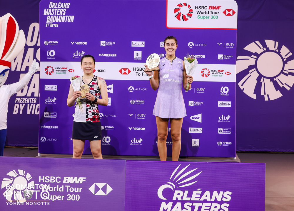 Hiszpanka Carolina Marin (fot. 1, 3) z pewnymi trudnościami zwyciężyła w Orléans Masters Badminton 2023 presented by VICTOR.