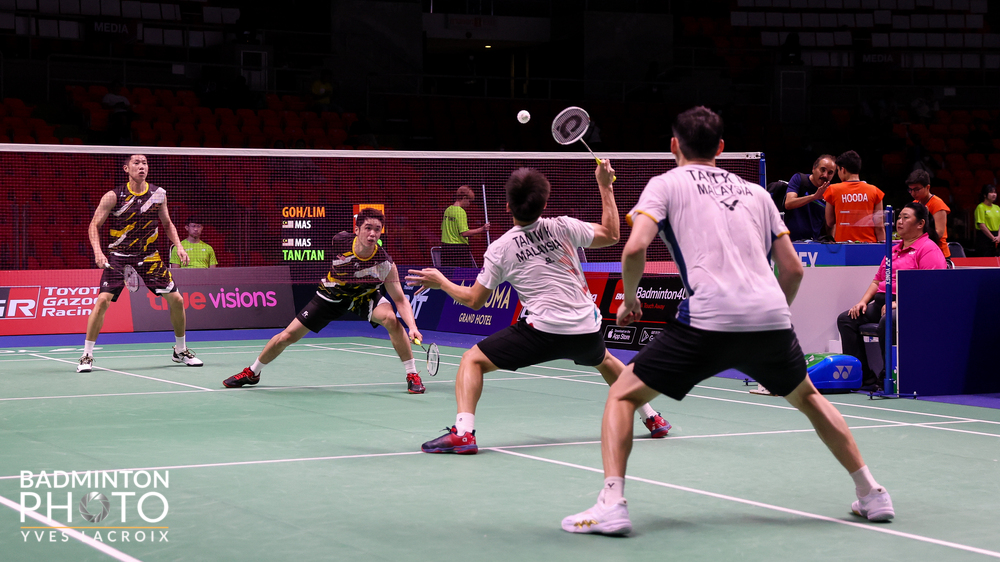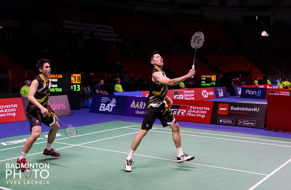 Smaczkiem dla kibiców podczas kwalifikacji debla mężczyzn była walka przeciwko sobie dawnych partnerów, którzy zdobyli razem srebro olimpijskie w Rio de Janeiro, a byli bardzo blisko złota. Mówimy o Malezyjczykach. To Goh V Shem (na fot. 1 pierwszy z lewej, na fot. 2 — z prawej), którego wspiera teraz Lim Khim Wah wygrał przeciwko byłemu partnerowi z czasów Rio - Tan Wee Kiongowi (na fot. 1 drugi z prawej), któremu towarzyszy- Tan Kian Meng 18:21 21:18 21:13. Otwarte Mistrzostwa Tajlandii w badmintonie. TOYOTA GAZOO RACING Thailand Open 2023. 30 maja — 4 czerwca 2023. Bangkok (Tailandia). Indoor Stadium Huamark. Turniej HSBC BWF World Tour Super 500. Pula nagród 420 tys. dol. Wyniki w serwisie tournamentsoftware.com. Fot. Yves Lacroix © BadmintonPhoto.com (live) jr |