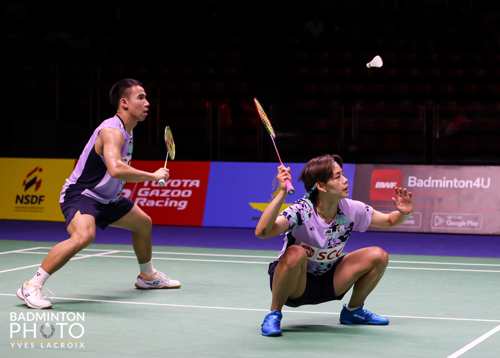 Wprawdzie z Koreankami przegrały tajskie deblistki Jongkolphan Kititharakul, Rawinda Prajongjaj (fot. 2), ale inny żeński debel gospodarzy, siostry Benyapa i Nuntakarn Aimsaard (fot. 3) i mikst, Dechapol Puavaranukroh, Sapsiree Taerattanachai (fot. 4) nie miały zaś większych problemów z awansem do finału kosztem Koreanek (Baek Ha Na, Lee So Hee) i duńskiej pary mieszanej (Mathias Christiansen, Alexandra Boje). Trzy kwadranse wystarczyły Koreance An Se Young i Chince He Bing Jiao do odprawienia ostatnich Europejek w grze pojedynczej, Caroliny Marin (Hiszpania) i Mii Blichfeldt (Dania). Wyniki półfinałów (3.06.2023) Gra pojedyncza mężczyzn LEE Cheuk Yiu (Hongkong, 8) — Toma Junior POPOV (Francja) 21:14 21:16 (0:35); Kunlavut VITIDSARN (Tajlandia, 2) — Lakshya SEN (Indie) 13:21 21:17 21:13 (1:15). Gra pojedyncza kobietAN Se Young (Korea, 1) — Carolina MARIN (Hiszpania, 4) 21:16 21:12 (0:44); HE Bing Jiao (Chiny, 3) — Mia BLICHFELDT (Dania) 21:13 21:18 (0:45). Gra podwójna mężczyznMuhammad Shohibul FIKRI, Bagas MAULANA (Indonezja) — CHOI Sol Gyu, KIM Won Ho (Korea, 5) 22:20 13:21 21:16 (0:56); LIANG Wei Keng, WANG Chang (Chiny, 3) — Marcus Fernaldi GIDEON, Kevin Sanjaya SUKAMULJO (Indonezja) 21:13 21:19 (0:32). KIM So Yeong, KONG Hee Yong (Korea, 1) — Jongkolphan KITITHARAKUL, Rawinda PRAJONGJAI (Tajlandia, 4) 21:12 21:12 (0:42); Benyapa AIMSAARD, Nuntakarn AIMSAARD (Tajlandia, 6) — BAEK Ha Na, LEE So Hee (Korea, 3) 21:17 21:7 (0:42). Gra mieszanaZob. też: Półfinał w Bangkoku powtórką Częstochowy? Michelle Li na drodze Caroliny Marin Otwarte Mistrzostwa Tajlandii w badmintonie. TOYOTA GAZOO RACING Thailand Open 2023. 30 maja — 4 czerwca 2023. Bangkok (Tailandia). Indoor Stadium Huamark. Turniej HSBC BWF World Tour Super 500. Pula nagród 420 tys. dol. Wyniki w serwisie tournamentsoftware.com. Fot. Yves Lacroix © BadmintonPhoto.com (live) jr |