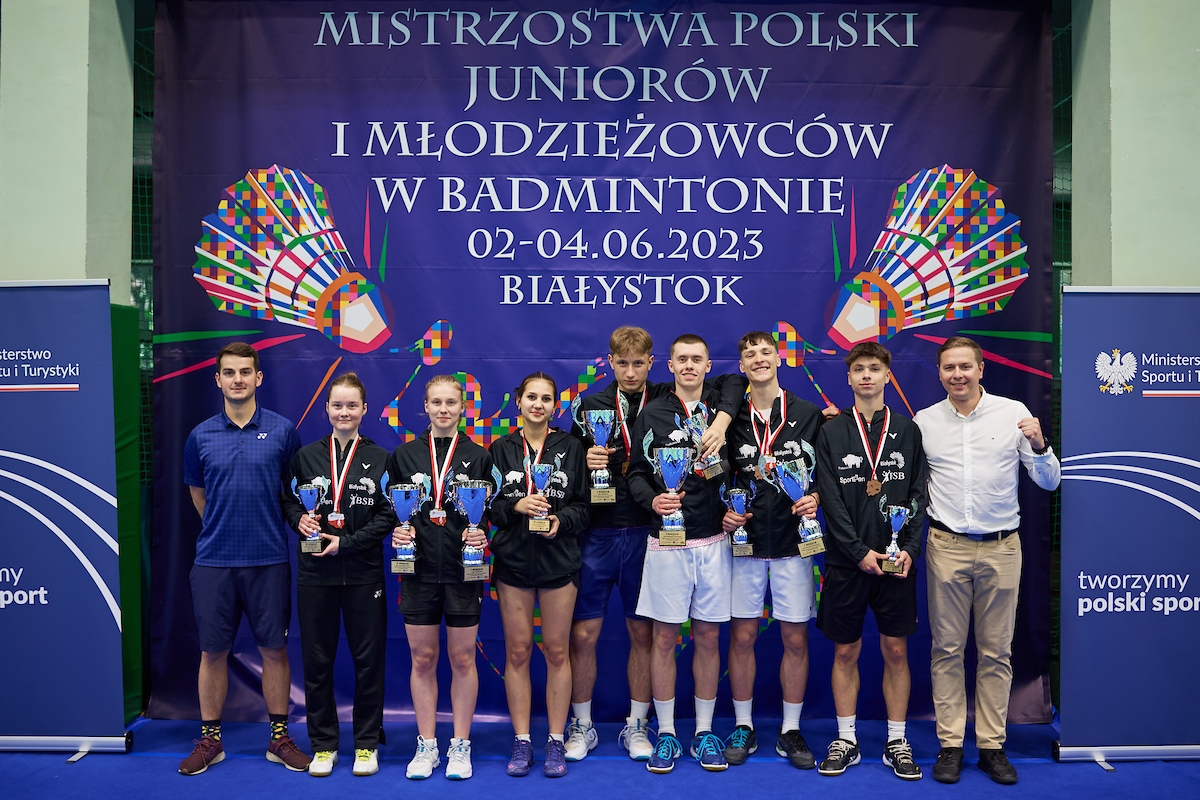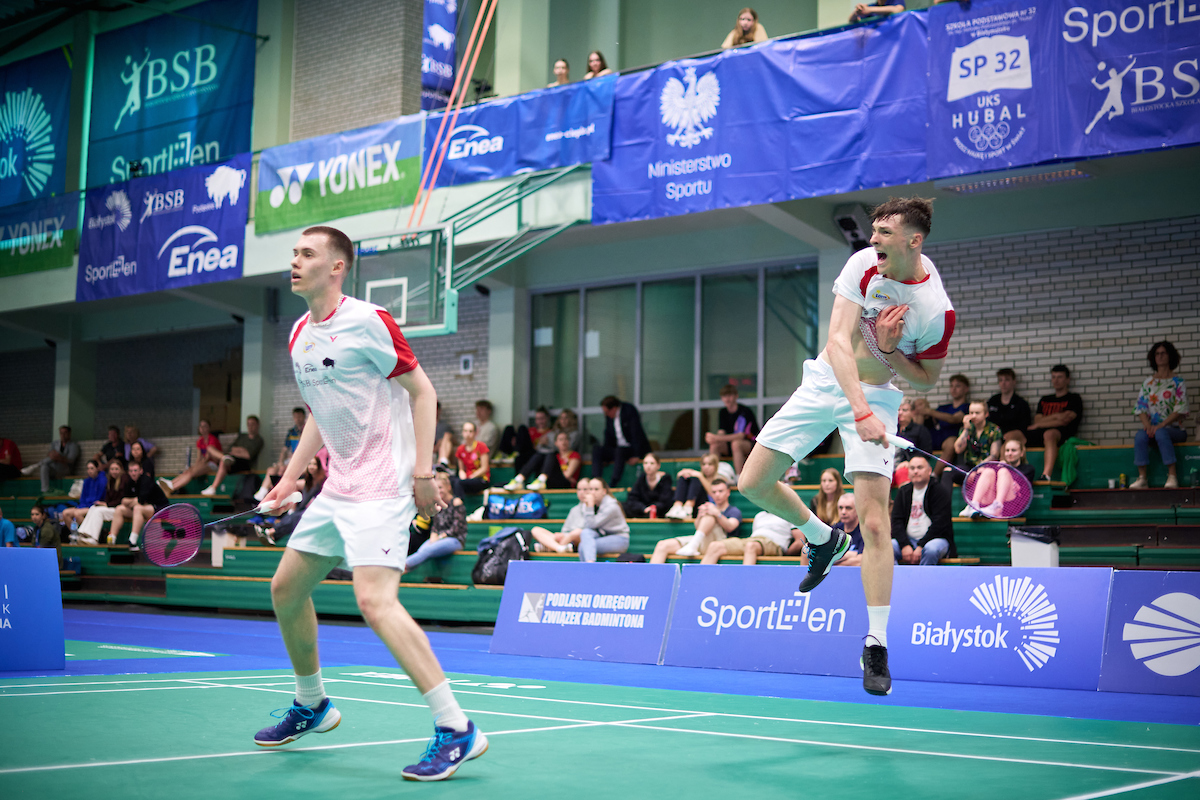 Mistrzostwa Juniorów i Młodzieżowców, które były już 35 turniejem rangi mistrzowskiej przeprowadzonym przez białostockich organizatorów, zgromadziły na starcie najlepszych polskich badmintonistów młodego pokolenia. - Po raz kolejny gościliśmy najzdolniejszych młodych badmintonistów w Białymstoku. Rywalizacja stała na wysokim poziomie i była niezwykle wyrównana, co bardzo cieszy – mówił po turnieju Paweł Lenkiewicz (fot. 1, z białostocką drużyną), dyrektor zawodów i główny organizator mistrzostw Polski Juniorów i Młodzieżowców. - Można powiedzieć, że w tym roku Białystok jest stolicą młodzieżowego badmintona. Przed tygodniem organizowaliśmy Yonex Polish Open U-17 oraz Międzynarodowy Festiwal Badmintona dla najmłodszych, a jesienią Polish International U-19 i być może Enea Polish Open w tej samej kategorii wiekowej. Bardzo się cieszę, bo to dowodzi tylko, że Białystok jest ważnym i cenionym ośrodkiem na badmintonowej mapie Polski – powiedział Lenkiewicz. W rywalizacji juniorów dwa tytuły przypadły białostockim badmintonistom. W grze mieszanej i podwójnej mężczyzn zwyciężyli Arkadiusz Dydyński i Julia Stankiewicz oraz Maksymilian Danielak i Dawid Perkowski (fot. 2) z białostockiego OSSM-SMS. Ich pojedynki były niezwykle emocjonujące. W grze podwójnej kobiet wśród juniorek zwyciężyły Anna Czuchra i Joanna Podedworny (fot. 3) z Unii Bieruń, które w finale pokonały białostocki debel Julię Stankiewicz i Julię Piwowar. Z kolei w grach pojedynczych tryumfowali faworyci Dominik Kwinta (Spartakus Niepołomice) i Joanna Podedworny (Unia Bieruń), która pokonała debiutującą na tym poziomie mistrzostw Oliwię Niedźwiedzką z SKB Suwałki. W turnieju młodzieżowców tegoroczne tytuły zdobyli Szymon Stokfisz (AZS AWF Katowice) w grze pojedynczej mężczyzn, Anastazja Chomicz (SKB Suwałki) w grze pojedynczej kobiet, Anastazja Chomicz i Uliana Wolska (obie SKB Suwałki) w grze podwójnej kobiet, Maciej Matusz (ABRM Warszawa) i Jakub Melaniuk (Unia Bieruń) w grze podwójnej mężczyzn oraz Szymon Ślepecki (ABRM Warszawa) i Dominika Kwaśnik (fot. 4, Beninca Feniks Kędzierzyn-Koźle) w grze mieszanej. - Tegoroczny sezon jest już piętnastym z rzędu, kiedy gościmy badmintonowe imprezy w Białymstoku. Chciałbym serdecznie podziękować prezydentowi miasta i marszałkowi województwa za wsparcie naszych działań i zaprosić wszystkich na kolejne imprezy w najszybszej dyscyplinie świata. W przyszłym roku najpewniej znów będziemy organizatorami Klubowych Mistrzostw Europy, które rok temu wygrał Hubal Białystok – powiedział Paweł Lenkiewicz.