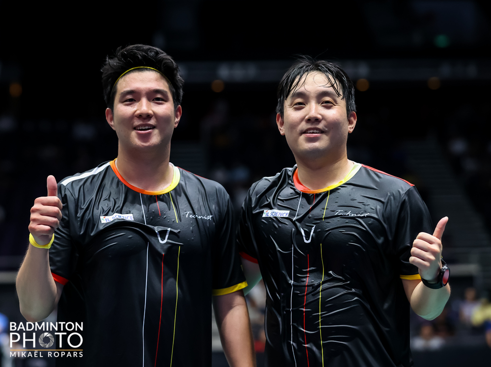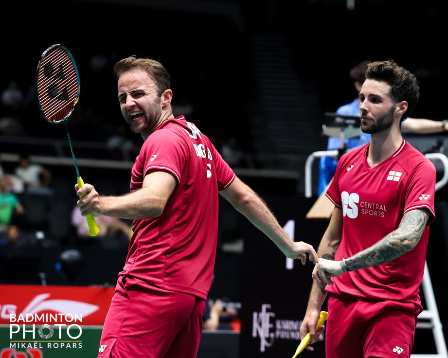 Angielski debel Ben Lane, Sean Vendy (fot. 1), znany polskim kibicom między innymi z wicemistrzostwa na Polish Open w Częstochowie (2019), co prawda już nie po raz pierwszy pokonał indonezyjski duet Fajar Alfian, Muhammad Rian Ardianto. Indonezyjczykom, obecnie liderom rankingu BWF, Anglicy "nie leżą", zwłaszcza na turniejach World Touru. Bo na mistrzostwach świata, gdzie zdobyli brązowy medal w zeszłym roku, właśnie dokonali tego dzięki pokonaniu Lane'a i Vendy'ego. Ale w Singapurze powróciła raz jeszcze słabość indonezyjskich mistrzów wobec Anglików, sfinalizowana zwycięstwem tych ostatnich 21:15 21:18. Trochę analogiczna sytuacja miała miejsce w konfrontacji wiceliderów rankingu światowego, Chińczyków Liu Yu Chena i Ou Xuan Yi z bardzo doświadczonymi Koreańczykami (fot. 2), Kim Gi Jungiem (32 lata) i Kim Sa Rangiem (33 lata). Ci ostatni zajmują obecnie 66. miejsce na liście światowej, ale z chińskim duetem radzą sobie dobrze (head-to-head 2:0), w zeszłym roku ograli go w finale Korea Masters. Teraz w Singapurze stoczyli wielką batalię, wytrzymując tempo przez ponad godzinę i wygrywając z chińskimi rywalami opromienionymi między innymi zwycięstwem na finałach World Touru (2022) 25:23 26:28 21:18. W grze mieszanej pary europejskie nieźle sobie radziły w konfrontacji z azjatyckimi. Na przykład duński mikst (fot. 3-4) Amalie Magelund, Mathias Thyrri (27. BWF) dał sobie radę z indonezyjskim w składzie Gloria Emanuelle Widjaja, Dejan Ferdinansyah (14. BWF) 21:17 21:19. Angielska para Lauren Smith, Marcus Ellis (55. BWF) wyeliminowała japońską, Natsu Saito, Hiroki Midorikawa, 21:17 22:20. Awansowały także wyżej notowane miksty europejskie, jak francuski — Delphine Delrue, Thom Gicquel — czy duński — Alexandra Boje, Mathias Christiansen. Pusarla Venkata Sindhu (Indie) nie obroni tytułu mistrzowskiego. Nic jednak dziwnego, skoro już w pierwszej rundzie nadziała się na rozstawioną z numerem jeden faworytkę, mistrzynię świata Akane Yamaguchi (Japonia). Japonka musiała się jednak przez godzinę mocno napracować, by wygrać 18:21 21:19 21:17. Otwarte mistrzostwa Singapuru w badmintonie. Singapore Open 2023. 6 — 11 czerwca 2023. Singapur (Singapur). Singapore Indoor Stadium. Turniej HSBC BWF World Tour Super 750. Pula nagród: 850 tys. dol. Wyniki w serwisie tournamentsoftware.com. Fot. Mikael Ropars © BadmintonPhoto.com (live) jr |