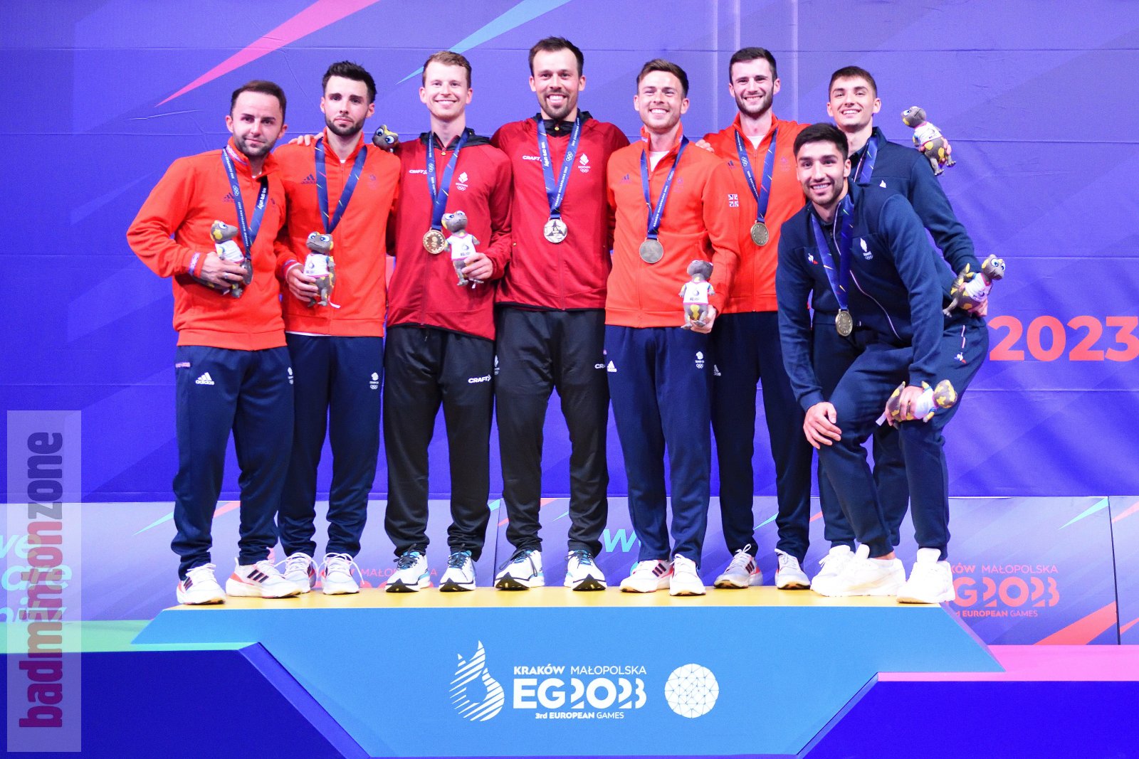Z kolei Piek w niedzielę zawalczy o złoto w mikście z Robinem Tabelingiem, brązowym medalistą 2. igrzysk w deblu męskim (w parze z Jelle Maasem). Przeciwko Holendrom zagrają znakomici Francuzi Thom Gicquel, Delphine Delrue, którzy w trzysetowym półfinale wyeliminowali broniących tytułu Brytyjczyków Marcusa Ellisa i Lauren Smith. Francuzi liczą w niedzielę na gorącą atmosferę na widowni. — Atmosfera była dziś dobra — powiedział nam po zwycięskim półfinale Gicquel — ale w poprzednie dni nie było (na trybunach — przyp. red.) dużo ludzi. Szału nie było... Teraz jest już silniejszy odzew publiczności na to, co dzieje się na korcie. - Podzielam zdanie Thoma — dodała Delrue. — Teraz odczuwamy większe wsparcie widzów, więc przy tym się lepiej gra. My to po prostu lubimy. Viktor Axelsen, jak powiedział w wywiadzie dla Badminton Europe miał dzisiaj nienajlepszy dzień, co nie przeszkodziło mu pokonać w półfinale Igrzysk w dwóch setach Tomę Juniora Popova. Być może deszczowa pogoda nie nastrajała Duńczyka pozytywnie. Zapytany o dotychczasowe wrażenia z turnieju i pobytu w Polsce, Axelsen zdradził redakcji BadmintonZone.pl: — Czuję się naprawdę dobrze tutaj i uważam, że Tarnów to piękne miasto. Myślę, że jest tu kilka dobrych restauracji i naprawdę podobały mi się dni ze słoneczną pogodą. W sumie czuję się tu świetnie. A z potraw — jadłem takie polskie kluski z mięsem w środku — pierogi. Są bardzo dobre, smakowały mi. Jeżeli Mia Blichfeldt obroni tytuł z 2019 r., to będzie to już trzeci z rzędu tytuł mistrzowski w singlu kobiet dla Danii. Nie jest jednak faworytką jutrzejszego finału, ponieważ dotarła do niego również odrabiająca straty po kontuzjach Carolina Marin. Hiszpanka w swoim półfinale nie miała większego problemu z pokonaniem srebrnej medalistki z Mińska, Szkotki w barwach Wielkiej Brytanii, Kirsty Gilmour. Mathias Christiansen, Alexandra Bøje (Dania) zakończyli występ z brązowym medalem igrzysk. Mający dość podobny bilans wygranych meczów z Holendrami Tabeling, Piek, tym razem nie byli mocniejsi od notowanego niżej na świecie i przegrali w dwóch setach. Nie zawiódł duński debel męski, który zdobył złoty medal. W finale para Anders Skaarup Rasmussen, Kim Astrup pokonała z pewnym trudem brytyjski debel Ben Lane, Sean Vendy. Zacięte spotkanie (trzeci set 21:19 dla Duńczyków) cechowało spore napięcie, dyskusje z sędziami, a Ben Lane ujrzał żółtą kartkę. Z pewnością z brązowego medalu będzie zadowolona Szwajcarka, Jenjira Stadelmann, dla której to największe dotychczasowe osiągnięcie w karierze. Solidnie zagrał również 34-letni weteran turniejów, singlista Misha Zilberman (Izrael), który na najniższym podium Igrzysk Europejskich stanął drugi raz z rzędu. Wyniki finałów (1.07.2023) Debel mężczyzn Kim Astrup, Anders Skaarup Rasmussen (Dania) — Ben Lane, Sean Vendy (Wielka Brytania) 21:15 19:21 21:19 (1:14). Debel kobiet Gabriela Stojewa, Stefani Stojewa (Bułgaria) — Debora Jille, Cheryl Seinen (Holandia) 21:7 21:17 (0:38). Wyniki półfinałów (1.07.2023) Singel mężczyzn Viktor Axelsen (Dania) — Toma Junior Popov (Francja) 21:17 21:18 (0:51); Christo Popov (Francja) — Misha Zilberman (Izrael) 21:10 21:14 (0:43). Singel kobiet Carolina Marin (Hiszpania) — Kirsty Gilmour (Wielka Brytania) 21:13 21:11 (0:40); Mia Blichfeldt (Dania) — Jenjira Stadelmann (Szwajcaria) 21:15 21:16 (0:41). Mikst Zob. album zdjęć z 1/2 finałów debla igrzysk na Facebooku Badzine Poland.Thom Gicquel, Delphine Delrue (Francja) — Marcus Ellis, Lauren Smith 21:18 14:21 21:18 (1:15); Robin Tabeling, Selena Piek (Holandia) — Mathias Christiansen, Alexandra Bøje (Dania) 21:14 21:13 (0:31). Zob. album zdjęć z 1/4 finałów igrzysk na Facebooku Badzine Poland. Zob. album zdjęć z 4. dnia igrzysk na Facebooku Badzine Poland. Zob. album zdjęć z 3. dnia igrzysk na Facebooku Badzine Poland. Zob. album zdjęć z 2. dnia igrzysk na Facebooku Badzine Poland. Zob. album zdjęć z 1. dnia igrzysk na Facebooku Badzine Poland.Polacy za Holendrami Perspektywy Kwinty okiem Zhou Junlinga Spóźniony finisz męskiego debla na igrzyskach Awans Biało-Czerwonych Siostry i bracia pokonali polskie deble, w mikście — lepiej Ośmioro Biało-Czerwonych na liście kwalifikacyjnej. Trzecie Igrzyska Europejskie. 3rd European Games. Badminton w dniach: 26 czerwca — 2 lipca 2023, Tarnów (Polska). Arena Jaskółka TOSiR. Kategoria: indywidualne mistrzostwa kontynentalne. Impreza rozgrywana obecnie w 15 dyscyplinach sportowych. Strona igrzysk. Wyniki na stronie igrzysk. Wyniki w serwisie tournamentsoftware.com. Fot. Janusz Rudziński, BadmintonZone.pl (live) ap, jr |