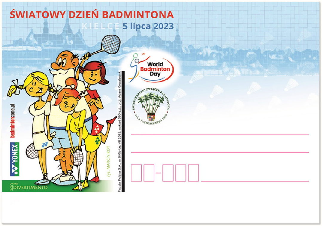 O kartce pocztowej postaramy się osobno poinformować, natomiast Światowa Federacja Badmintona (Badminton World Federation — BWF) z dumą skomentowała obchody drugiego dorocznego Światowego Dnia Badmintona: Wydarzenie ma na celu zjednoczenie entuzjastów badmintona, graczy i kibiców na całym świecie, pokazując uniwersalny urok tego sportu i promując jego wartości, takie jak integracja, sportowa rywalizacja i aktywny tryb życia. Nasze stowarzyszenia członkowskie i konfederacje kontynentalne w 58 krajach zaplanowały w sumie 122 oficjalne zarejestrowane działania, dając ludziom i społecznościom możliwość doświadczenia po raz pierwszy zabawy i integracyjnego badmintona. Celem wszystkich działań, niezależnie od ich wielkości i otoczenia, jest świętowanie i promowanie badmintona. Prezydent BWF Poul-Erik Høyer wyraził swoje podekscytowanie drugim Światowym Dniem Badmintona, stwierdzając: "Badminton to sport, który łączy ludzi i promuje dobre samopoczucie fizyczne i psychiczne. Światowy Dzień Badmintona pozwala nam świętować bogate dziedzictwo tego sportu, jego globalny zasięg i radość, jaką przynosi milionom ludzi". "Zapraszamy wszystkich, od doświadczonych zawodniczek i zawodników po początkujących, do przyłączenia się do nas w świętowaniu tego wyjątkowego dnia. Możesz świętować, grając z przyjaciółmi, próbując AirBadmintona po raz pierwszy lub uczestnicząc w jednej z aktywności BWF Shuttle Time. Mamy nadzieję, że uda nam się zachęcić jak najwięcej dzieci do wzięcia rakiety do ręki i doświadczenia tego ekscytującego sportu". Światowy Dzień Badmintona służy jako platforma do podnoszenia świadomości na temat tego sportu i jego pozytywnego wpływu na jednostki i społeczności. Poprzez angażujące działania, wydarzenia i inicjatywy BWF stara się inspirować nowe pokolenie zawodników i wspierać upodobanie do tego sportu, które wykracza poza granice. Wszystko się zaczęło instytucjonalnie 89 lat temu, 5 lipca 1934 roku, kiedy powstała Międzynarodowa Federacja Badmintona (wówczas IBF, International Badminton Federation, obecnie BWF). W uznaniu tej ważnej daty i aby uczynić ten dzień świętem badmintona na całym świecie, Światowy Dzień Badmintona odbywa się co roku 5 lipca. jr, BWF |
