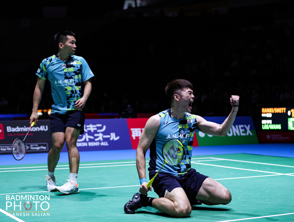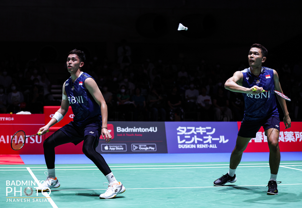 Mistrzowie olimpijscy z Tokio w deblu, Tajwańczycy Lee Yang i Wang Chi-Lin (fot. 1), sprawili kolejną niespodziankę, awansując do półfinału po zwycięstwie nad tryumfatorami Korea Open, Satwiksairajem Rankireddym i Chiragiem Shettym (Indie) 21:15 23:25 21:16 (zob. mecz na YouTube). Zwycięstwo aktualnych mistrzów olimpijskich jako sensacja brzmi absurdalnie, ale tajwańskiemu deblowi po tokijskim tryumfie nie wiodło się — delikatnie rzecz ujmując — najlepiej i zdawali się raczej potwierdzać opinię krytyków o ich nietypowo szczęśliwym występie na igrzyskach. Hindusów usprawiedliwia z kolei obciążenie wysiłkiem z poprzedniej imprezy. Marzący o kolejnych igrzyskach Yang i Chi-Lin mają przed sobą półfinał przeciwko rozstawionym z numerem jeden Indonezyjczykom, Fajarowi Alfianowi i Muhammadowi Rianowi Ardianto (fot. 2), gdzie oczywiście nie będą faworytami, zwłaszcza że liderzy listy światowej mieli lżejsze niż Tajwańczycy przeprawy w dwóch poprzednich rundach tego turnieju. Natomiast rozgrywki w drugiej, dolnej połówce drabinki gry podwójnej mężczyzn przebiegają pod znakiem wojenek japońsko-chińskich. W ćwierćfinale chiński duet Liu Yu Chen, Ou Xuan Yi (fot. 3) pomścił parę rodaków, Liang Wei Keng, Wang Chang, pokonując ich wcześniejszych pogromców, debel gospodarzy Akira Koga, Taichi Saito 20:22 22:20 21:14. Jednak teraz Chińczycy natkną się na kolejnych Japończyków, Takuro Hokiego i Yugo Kobayashiego. Byli mistrzowie świata pokonali bowiem w piątkowym ćwierćfinale aktualnych czempionów, malezyjską parę Aaron Chia, Soh Wooi Yik 10:21 21:15 21:16. Dzień wcześniej z gry zrezygnował Anders Antonsen, który wobec zbliżających się mistrzostw świata w Danii zdecydował się nie nadwerężać swojego zdrowia w meczu z Kodai Naraoką (fot. 4) przy stanie 18:18 w pierwszym secie. Japończyk w drodze do półfinału napotkał ostatnio mocnego Shi Yu Qiego, który jednak okazał się tym razem zbyt słaby, przegrywając z Naraoką w trzech setach 21:11 19:21 14:21. Na drodze Japończyka w sobotnim finale stanie mistrz Viktor Axelsen, który w ćwierćfinale odprawił w trzech setach H.S. Prannoya (Indie, 8). W drugim półfinale spotkają się Jonathan Christie (Indonezja, 5), który w ćwierćfinale zwycięsko wyszedł ze spotkania z Kunlavutem Vitidsarnem (Tajlandia, 3), oraz nierozstawiony Lakshya Sen (Indie), który również w dwusetowym meczu pokonał Kokiego Watanabe (Japonia). Dużym rozczarowaniem dla rodzimych kibiców był występ singlistki Akane Yamaguchi, dotychczas niezwykle skutecznej w wygrywaniu światowej serii. W ćwierćfinale Yamaguchi przegrała z reprezentantką Indonezji, Gregorią Mariską Tunjung (fot. 5) w trzech setach 11:21 21:11 18:21. Półfinał Tunjung zagra z He Bing Jiao (Chiny, 5), która dziś pomściła przegraną drużynowej koleżanki, mistrzyni olimpijskiej Chen Yu Fei z naturalizowaną w USA Chinką Beiwen Zhang. Drugi półfinał obsadziły niezwykle silne, grające dotąd w Tokio bez straty seta, Tai Tzu Ying (Tajwan, 4) i An Se Young (Korea, 2). Zob. też: