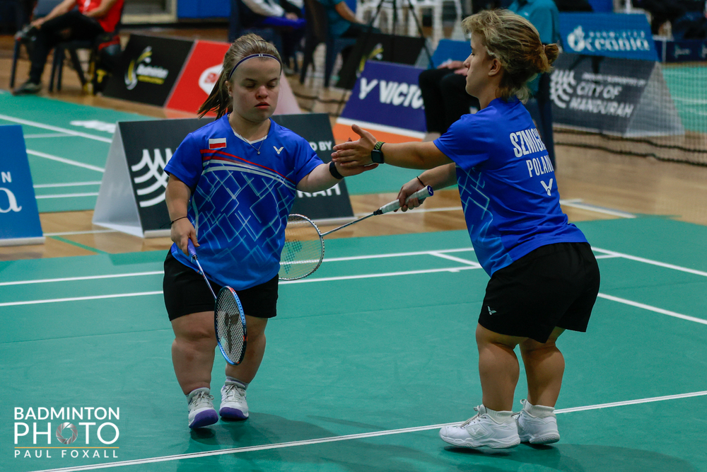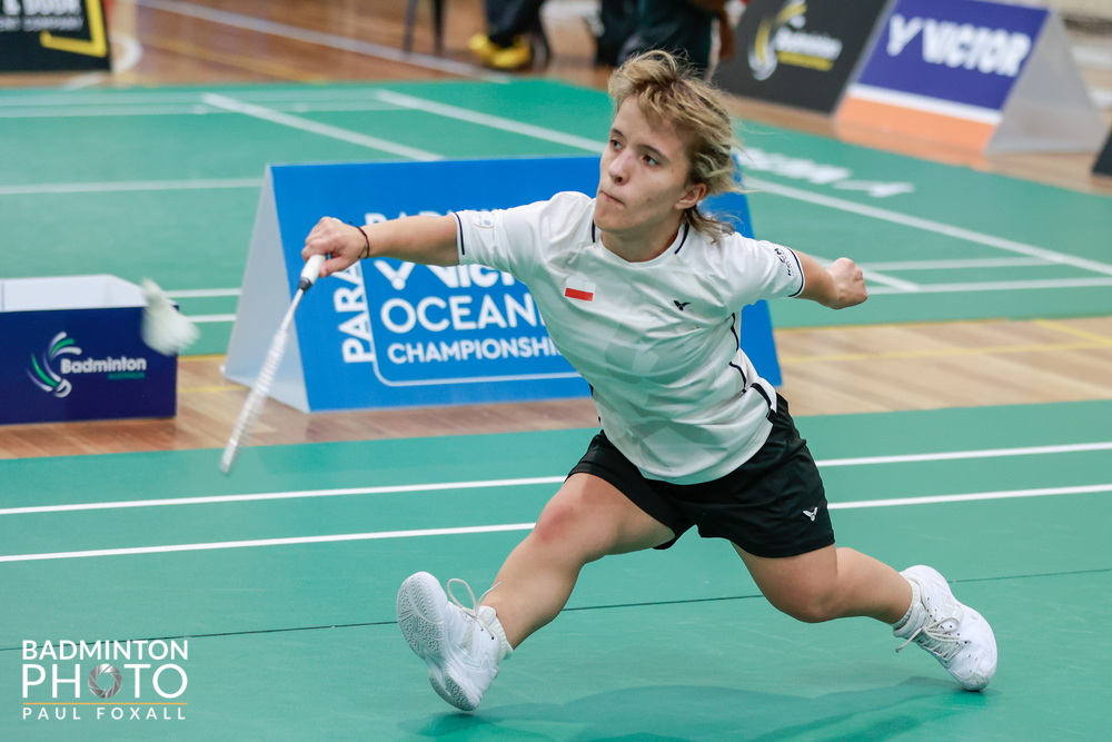 W swoim czwartkowym występie Oliwia Szmigiel (fot. 1) przegrała w półfinale kategorii SH 6 z rozstawioną z numerem jeden Indonezyjką Riną Marliną 11:21 12:21. Poprzednio Oliwia ograła w fazie grupowej dwie Azjatki, Lam Ching Yung (Hongkong) 21:9 21:16 oraz Wu Yu-Yen (Tajpej) 21:17 21:18, a w ćwierćfinale Ukrainkę Ninę Kozłową 21:8 21:15. Daria Bujnicka i Oliwia Szmigiel (fot. 2) przegrały w półfinale z parą Yasmina Eissa (Egipt), Jayci Simon (USA) 16:21 22:20 12:21. Wcześniej, w fazie grupowej, Polki ustąpiły peruwiańskiemu deblowi Rubi Milagros Fernandez Vargas, Giuliana Poveda Flores 11:21 10:21 i pokonały nowozelandzko-ukraiński duet Amy Dunn, Nina Kozłowa 21:9 21:2. W kategorii SU 5 Bartłomiej Mróz (fot. 3) i Sean O'Sullivan (Anglia) pokonali debel Manuel Garcia, Pablo Serrano (Hiszpania) 21:8 21:13 i zdobyli brązowy medal. W poprzednich dniach polsko-angielski debel odnotował porażki z parami: Hardik Makkar, Ruthick Ragupathi (Indie) 9:21 17:21 oraz Muhammad Fareez Anuar, Cheah Liek Hou (Malezja) 9:21 13:21. Międzynarodowe mistrzostwa Zachodniej Australii w parabadmintonie. Western Australia Para Badminton International 2023. 2-6 października 2023. Perth (Australia). Kategoria BWF: Level 2. Wyniki w serwisie bwfpara.tournamentsoftware.com. Fot. Paul Foxall © BadmintonPhoto.com (live) jr |