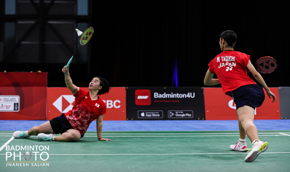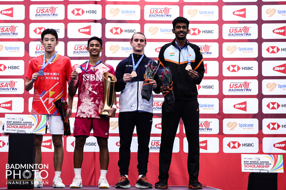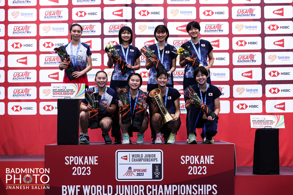Złoty medal Tajlandka dedykowała pamięci swojego dziadka, który nie dożył jej sukcesu, ale wcześniej był jej wielkim przewodnikiem i przyjacielem. O ile złoty medal w singlu na mistrzostwach świata juniorów dla Tajlandii to nic przełomowego (Ratchanok Intanon i Kunlavut Vitidsarn zdobywali nawet trzykrotnie), to tytuł mistrzowski Alwi Farhana (fot. 2) ma wymiar historyczny: pierwsze złoto Indonezji w tej konkurencji na takich mistrzostwach. Farhan w finale pokonał pogromcę naszego Mateusza Golasa, a mianowicie rozstawionego z numerem trzy Chińczyka Hu Zhe Ana (na fot. 3 oprócz finalistów także Francuz Alex Lanier i Hindus Ayush Shetty). Historyczny był także srebrny medal Stanów Zjednoczonych (czyli gospodarzy) w grze podwójnej juniorek. Francesca Corbett i Allison Lee zdobyły pierwszy w ogóle medal dla USA na mistrzostwach świata juniorów. Szły właściwie po złoto, bo w półfinale pokonały rozstawione z numerem jeden Japonki. W finale wygrały pierwszego seta przeciwko kolejnemu deblowi japońskiemu (Maya Taguchi i Aya Tamaki), ale potem osłabły. Na podium znalazły się aż trzy pary japońskie (fot. 4). Z kolei miksta zdominowały pary chińskie, które rozegrały pomiędzy sobą finał zakończony minimalnym zwycięstwem Liao Pin Yi i Zhang Jia Han. Tytuł mistrzowski w deblu także przypadł juniorom reprezentującym Państwo Środka (Ma Shang i Zhu Yi Jun). Zob. finały na YouTube. Wyniki półfinałów (7.10.2023) Gra pojedyncza mężczyzn HU Zhe An (Chiny, 3) — Alex LANIER (Francja, 1) 22:20 22:20 (0:57); Alwi FARHAN (Indonezja, 4) — Ayush SHETTY (Indie) 21:18 21:15 (0:37). Gra pojedyncza kobiet Chiara Marvella HANDOYO (Indonezja) — HUANG Lin Ran (Chiny) 21:17 21:19 (0:47); Pitchamon OPATNIPUTH (Tajlandia, 2) — XU Wen Jing (Chiny, 8) 21:19 21:11 (0:38). Gra podwójna mężczyzn LAI Po Yu, TSAI Fu Cheng (Tajpej, 6) — Bryan Jeremy GOONTING, Aaron TAI (Malezja, 5) 21:18 15:21 21:14 (0:49); MA Shang, ZHU Yi Jun (Chiny, 4) — HUANG Jui-Hsuan, HUANG Tsung-I (Tajpej, 15) 21:15 24:22 (0:38). Gra podwójna kobiet Francesca CORBETT, Allison LEE (USA, 3) — Mei SUDO, Nao YAMAKITA (Japonia, 1) 18:21 21:16 21:13 (1:04); Maya TAGUCHI, Aya TAMAKI (Japonia) — Ririna HIRAMOTO, Riko KIYOSE (Japonia, 15) 13:21 21:7 21:19 (0:54). Gra mieszana ZHU Yi Jun, HUANG Ke Xin (Chiny, 1) — LOW Han Chen, CHONG Jie Yu (Malezja, 4) 21:14 21:14 (0:31); LIAO Pin Yi, ZHANG Jia Han (Chiny, 3) — Jonathan Farrell GOSAL, Priskila Venus ELSADAI (Indonezja, 12) 21:16 21:16 (0:29). Wyniki finałów (8.10.2023) Gra pojedyncza mężczyzn Gra pojedyncza kobiet Pitchamon OPATNIPUTH (Tajlandia, 2) - Chiara Marvella HANDOYO (Indonezja) 21:11 21:9 (0:34). Gra podwójna mężczyzn MA Shang, ZHU Yi Jun (Chiny, 4) - LAI Po Yu, TSAI Fu Cheng (Tajpej, 6) 17:21 21:17 21:15 (0:59). Gra podwójna kobiet Maya TAGUCHI, Aya TAMAKI (fot. 6, Japonia) - Francesca CORBETT, Allison LEE (USA, 3) 12:21 21:13 21:15 (0:55). Gra mieszana LIAO Pin Yi, ZHANG Jia Han (Chiny, 3) - ZHU Yi Jun, HUANG Ke Xin (Chiny, 1) 21:10 16:21 24:22 (0:53). Na fot. 7 grono sędziowskie, m.in. Raszyd Jabłoński (Polska). Indywidualne mistrzostwa świata juniorów w badmintonie (U-19) — Eye-Level Cups (BWF World Junior Championships 2022). 2-8 października 2023. Spokane (USA). Kategoria: Grade 1 – Junior Tournament. Wyniki w serwisie tournamentsoftware.com. Fot. Jnanesh Salian © BadmintonPhoto.com (live) az |