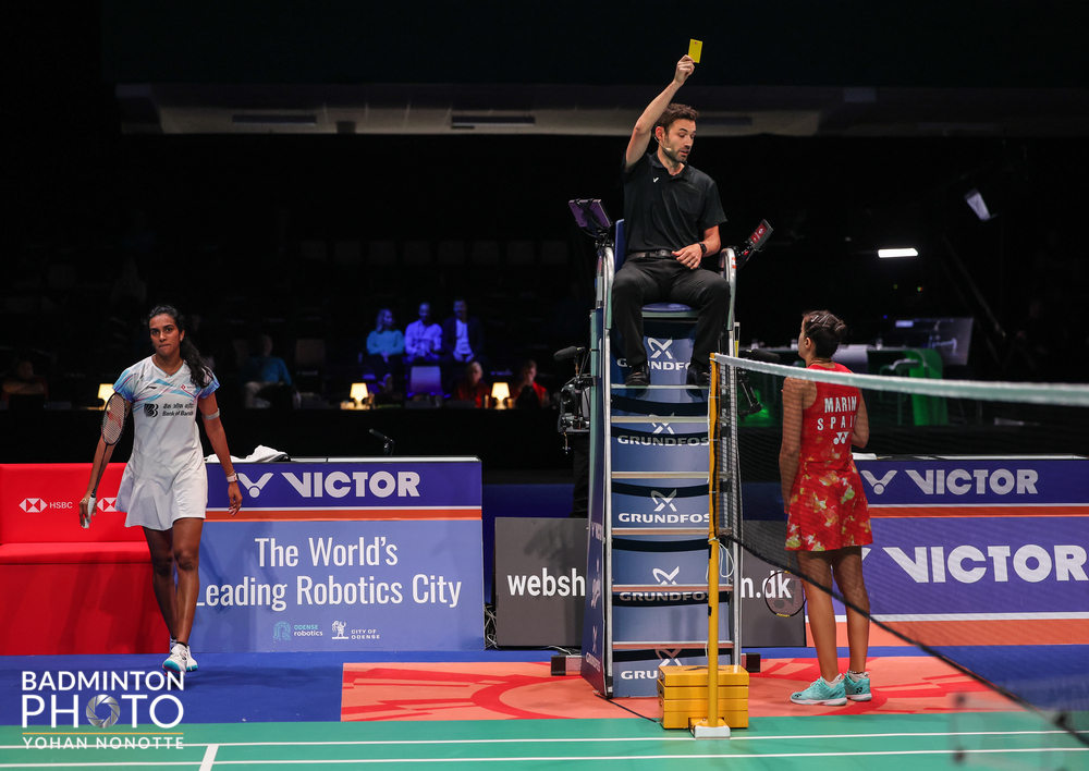Zanosiło się na porywający trzeci set półfinałowego pojedynku otwartych mistrzostw Danii w badmintonie (Denmark Open 2023 presented by VICTOR HSBC BWF World Tour Super 750) pomiędzy osiągającą ostatnimi czasy coraz lepsze rezultaty Hiszpanką Caroliną Marin (6. BWF) i próbującą wyrwać się z kryzysu formy Hinduską Pusarlą Venkatą Sindhu (12. BWF). Pierwsze dwa sety były wyrównane i stały na wysokim pozomie, a obie badmintonistki stoczyły ze sobą wiele pamiętnych spotkań, z finałami igrzysk olimpijskich (2016) i mistrzostw świata (2018) na czele. Jednak stało się zupełnie inaczej...