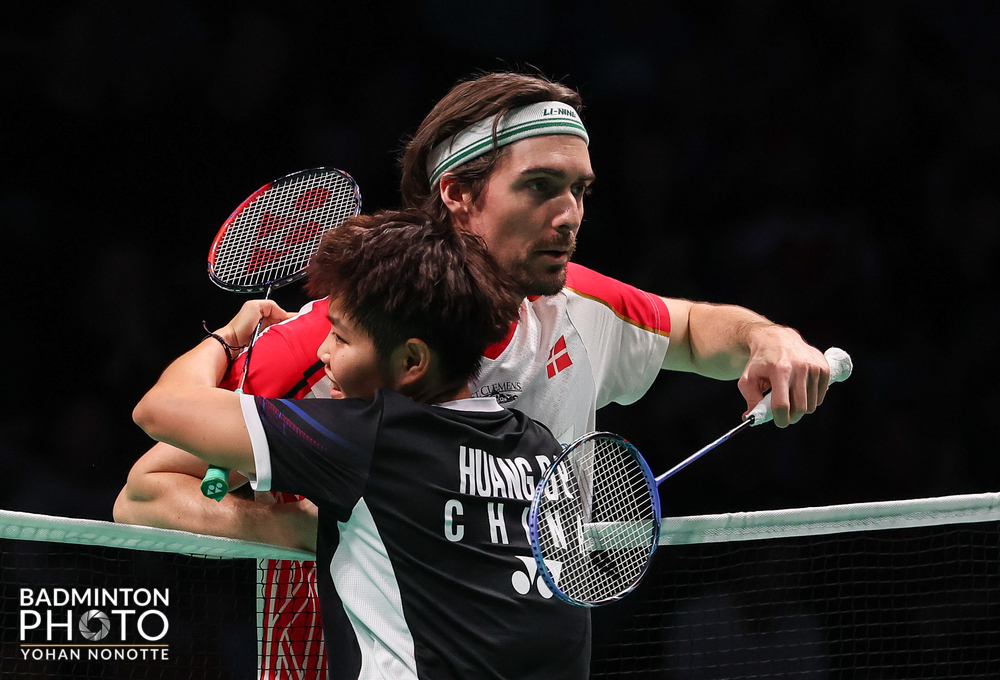Indyjskiej badmintonistce wyraźnie nie szło od początku decydujacej partii. Już w końcówce drugiego seta Marin złapała wiatr w żagle i niemal odrobiła kilkupunktową stratę do Sindhu, która jednak wymęczyła 21. punkt, co mogło dać jej w trzeciej partii impuls do kontrofensywy. Nic takiego nie nastąpiło, a Hiszpanka miała co chwila okazję do swoich kontrowersyjnych popisów wokalnych. Co więcej, starała się narzucić przyśpieszone tempo meczu nie tylko w trakcie akcji, ale i pomiędzy nimi. Polegało to na podbieraniu do własnego serwu (po zdobyciu punktu) lotki leżącej po przeciwnej stronie siatki oraz próbie szybkiego serwowania, nawet gdy przeciwniczka nie była przygotowana. Spotkanie prowadził względnie surowy sędzia austriacki Daniel Wolf, który zirytowany opóźnianiem gry przez Hinduskę i złośliwym przyśpieszaniem przez Hiszpankę ostrzegł obie panie. Ale to nie pomogło. Po zdobyciu dziewiątego punktu przez Marin (9:2) Sindhu próbowała nieskutecznie przeszkodzić Hiszpance w kolejnym zgarnięciu lotki ze swojej strony kortu i doszło do napiętej dyskusji obu zawodniczek (fot. 3). Sędzia prowadzący pokazał obu żółtą kartkę (fot. 1, 2). Cały incydent chyba nie wyszedł na dobre Sindhu, bo nie zdołała odwrócić losów spotkania i nadal traciła seryjnie punkty, przegrywając ostatniego seta do siedmiu. Nie przysłużył się również Marin, która zapewne wyczuła niestosowność swego zachowania i przeprosiła niedługo później rywalkę na Instagramie. W finale rywalką Marin, mistrzyni olimpijskiej z Rio, będzie aktualna mistrzyni olimpijska, Chen Yu Fei (Chiny), z którą Hiszpanka w tym roku przegrała już dwa razy, nie potrafiąc nawet urwać seta. Chiny mają szansę nawet na cztery tytuły mistrzowskie. Jeden jest pewny, bo w finale miksta grają ich dwie pary. Jedna (Zheng Si Wei, Huang Ya Qiong) w półfinale odprawiła aktualnych mistrzów świata (Seo Seung Jae, Chae Yu Jung z Korei). Druga (Feng Yan Zhe, Huang Dong Ping) zdławiła (fot. 5) nadzieje gospodarzy ulokowane w ich mikście (Mathias Christiansen, Alexandra Bøje). Następny tytuł dla Chin wydaje się zaś pewny na prawie sto procent, bo w finale debla kobiet ich para (aktualne mistrzynie świata Chen Qing Chen i Jia Yi Fan) zmierzą się z Japonkami (Nami Matsuyama, Chiharu Shida), z którymi w tym roku grały cztery razy, zawsze odnosząc zwycięstwo. Także finał singla mężczyzn ma faworyta w osobie Chińczyka Weng Hong Yanga. Zagra z Malezyjczykiem Lee Zii Jia, którego ograł w tym roku dwa razy, nie poniósł w tym czasie z nim porażki. Co prawda obie wspomniane wygrane były w trzech setach, a Malezyjczyk wydaje się być w relatywnie wysokiej formie. Jedyny finał bez Chińczyków to debel męski. Jeden z półfinałów musiał wyłonić Indonezyjczyków, bo grały tam ich dwa deble (fot. 6): Muhammad Shohibul Fikri i Bagas Maulana (14. BWF) kontra Fajar Alfian, Muhammad Rian Ardianto (2. BWF). Wbrew rankingowi i bilansowi wcześniejszych spotkań wygrali ci pierwsi. W niedzielę zagrają przeciwko malezyjskiemu deblowi Aaron Chia, Soh Wooi Yik. Ci ostatni, brązowi medaliści tegorocznych mistrzostw świata i brązowi medaliści igrzysk w Tokio, są teoretycznie faworytami w starciu z Indonezyjczykami (tegoroczny bilans 3:0 bez straty seta). Wyniki półfinałów (21.10.2023) Gra pojedyncza mężczyzn LEE Zii Jia (Malezja) — LEE Cheuk Yiu (Honkong) 21:15 21:17 (0:43), zob. na YouTube. WENG Hong Yang (Chiny) — SHI Yu Qi (Chiny, 6) 21:19 21:14 (0:50), zob. na YouTube. Gra pojedyncza kobiet Gra podwójna mężczyzn Muhammad Shohibul FIKRI, Bagas MAULANA (Indonezja) — Fajar ALFIAN, Muhammad Rian ARDIANTO (Indonezja, 1) 21:11 16:21 21:12 (0:54), zob. na YouTube. Aaron CHIA, SOH Wooi Yik (Malezja, 5) — Kim ASTRUP, Anders Skaarup RASMUSSEN (Dania, 7) 16:21 21:15 21:15 (0:56), zob. na YouTube. Gra podwójna kobiet CHEN Qing Chen, JIA Yi Fan (Chiny, 1) — Rin IWANAGA, Kie NAKANISHI (Japonia) 21:10 21:18 (0:49), zob. na YouTube. Nami MATSUYAMA, Chiharu SHIDA (Japonia, 5) — Mayu MATSUMOTO, Wakana NAGAHARA (Japonia, 8) 12:21 21:13 21:14 (1:15), zob. na YouTube. Gra mieszana ZHENG Si Wei, HUANG Ya Qiong (Chiny, 1) — SEO Seung Jae, CHAE Yu Jung (Korea, 4) 21:16 21:16 (0:40), zob. na YouTube. FENG Yan Zhe, HUANG Dong Ping (Chiny, 3) — Mathias CHRISTIANSEN, Alexandra BØJE (Dania) 21:13 21:19 (0:45), zob. na YouTube. Zob. też: Czy Seo Seung Jae odkuje się w mikście? Wolontariat samojezdnych robotów na Denmark Open Trudny dzień faworytów Miły początek dla duńskich kibiców. Otwarte mistrzostwa Danii w badmintonie. Denmark Open 2023 presented by VICTOR. 17-22 października 2023. Odense (Dania). Jyske Bank Arena. HSBC BWF World Tour Super 750. Pula nagród: 850 tys. dol. Wyniki w serwisie tournamentsoftware.com. Fot. Yohan Nonotte © BadmintonPhoto.com (live) az |