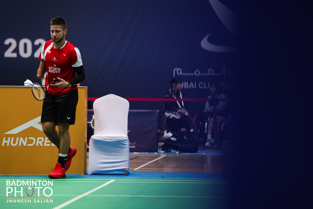 Bartłomiej Mróz (fot. 1-2) zapewnił sobie medal w grze podwójnej SU 5 na międzynarodowych mistrzostwach Dubaju w parabadmintonie (15th Fazza Dubai Para Badminton International 2023).