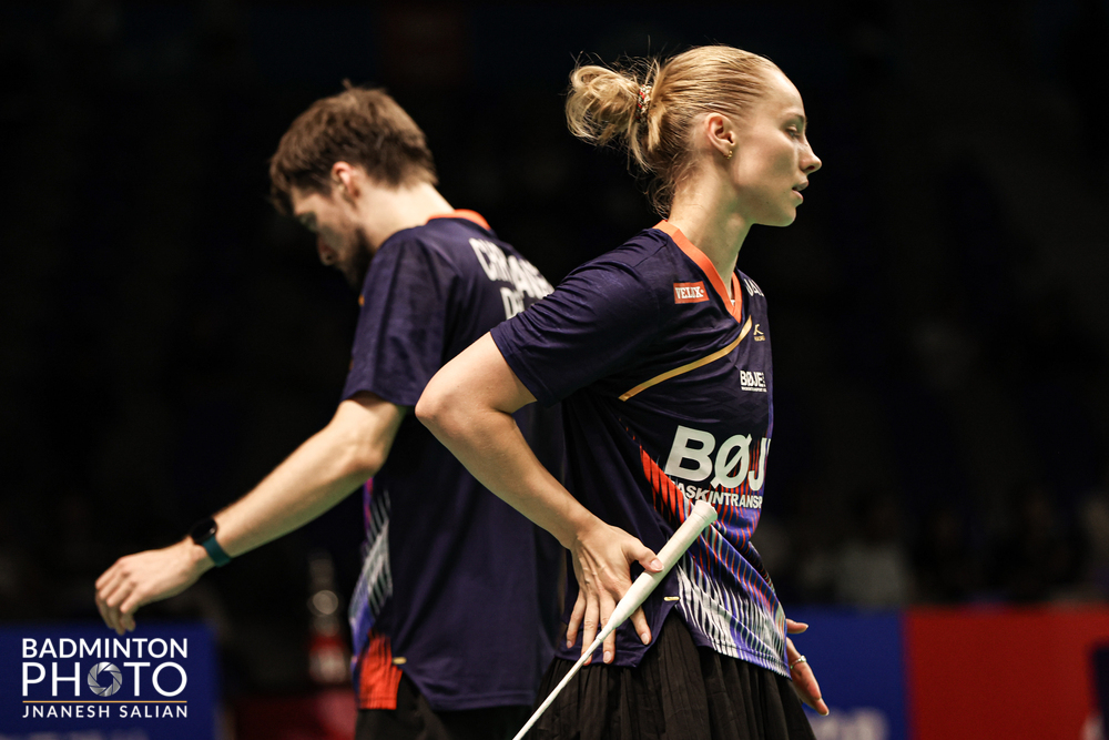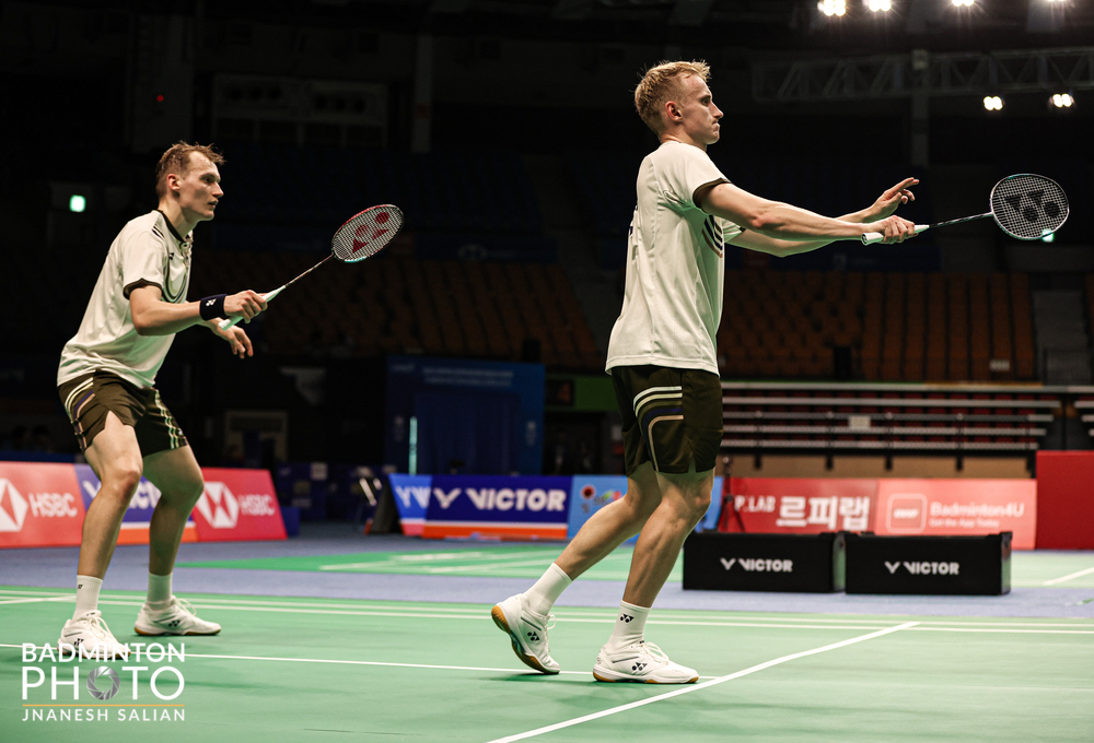 Chińczycy to numer 16 rankingu BWF, dzięki czemu rozstawiono ich w Suwonie z numerem siedem. Kimowie to weterani światowych kortów, ale obecnie w turniejach World Touru dają radę w najlepszym wypadku przejść pierwszą rundę, potem dostają zadyszki. Podobnie było na mistrzostwach świata w Paryżu, gdzie w drugiej rundzie nie nadążyli za młodszymi Anglikami (Ben Lane i Sean Vendy). Ciekawe, czy teraz poradzą sobie w drugiej rundzie ze swoimi rodakami lub Malezyjczykami. I czy zaczną startować w mistrzostwach świata seniorów. Pozycja koreańskich rutyniarzy w rankingu światowym jest w każdym razie zaniżona, gdyż rozegrali zbyt mało turniejów. Realnie powinni być lokowani pod koniec czwartej dziesiątki. Tak jak Kimom nie zaszkodził wiek, braciom Jiříemu i Ondřejowi Králom (fot. 2) nie zaszkodził jetlag po przeniesieniu się z Krakowa, gdzie w sobotę pod wieczór przegrali półfinał z późniejszymi zwycięzcami, Sawadą i Yoshidą z Japonii. Usytuowani na początku drugiej setki rankingu światowego Czesi musieli w Korei walczyć w kwalifikacjach do turnieju głównego, co zakończyli z powodzeniem, eliminując angielsko-australijski duet Wang Yue Hang, Zewei Xie 21:15 21:14. We wtorek wprawdzie awansowały do drugiej rundy dwa chińskie deble męskie, ale i dwa odpadły, bo oprócz rozstawionych z siódemką ofiar Kimów z turniejem pożegnali się także rozstawieni z numerem dwa wicemistrzowie olimpijscy, Liang Wei Keng i Wang Chang. To dzieło japońskiego debla Kenya Mitsuhashi, Hiroki Okamura, który pokonał Chińczyków 18:21 21:18 21:18. Do turnieju głównego dołączył duński mikst Mathias Christiansen, Alexandra Bøje (fot. 3), który w kwalifikacjach poradził sobie z parą gospodarzy, Kim Jae Hyeon, Jang Eun Seo 21:16 21:19. Otwarte mistrzostwa Korei w badmintonie. SUWON VICTOR Korea Open 2025. 23 — 28 września 2025. Suwon (Korea Południowa). Turniej rangi HSBC BWF World Tour Super 500. Pula nagród: 475 tys. dol. Wyniki w serwisie BWF. Fot.: Jnanesh Salian © BadmintonPhoto.com (live) jr |