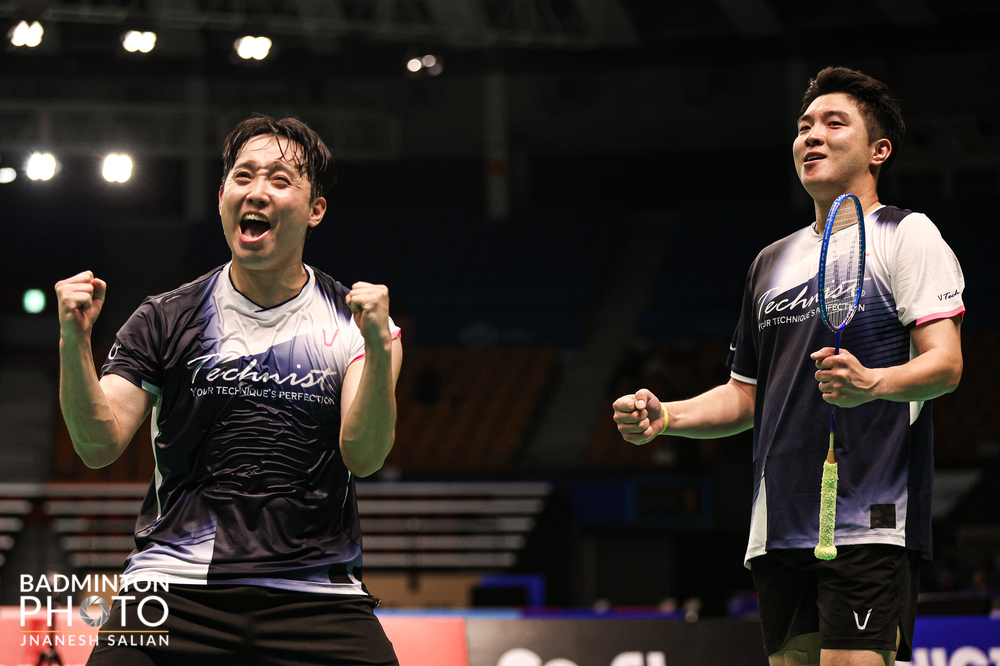 Koreańscy weterani, 36-letni Kim Sa Rang i 35-letni Kim Gi Jung (fot. 1), poczuli się pewnie na swoim gruncie i w pierwszej rundzie otwartych mistrzostw Korei w badmintonie (SUWON VICTOR Korea Open 2025 HSBC BWF World Tour Super 500, 475 tys. dol.) wyeliminowali (24:22 21:19) chiński debel Huang Di, Liu Yang, notowany na liście światowej o 83 miejsca wyżej.
