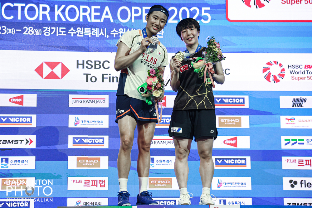 Gospodarze otwartych mistrzostw Korei w badmintonie (SUWON VICTOR Korea Open 2025 HSBC BWF World Tour Super 500, 475 tys. dol.) liczyli na trzy złote medale: w singlu pań i deblu panów, ale szyki pokrzyżowała im Japonka Akane Yamaguchi (fot. 1-2), która pokonała mistrzynię olimpijska z Paryża, An Se Young (fot. 2).