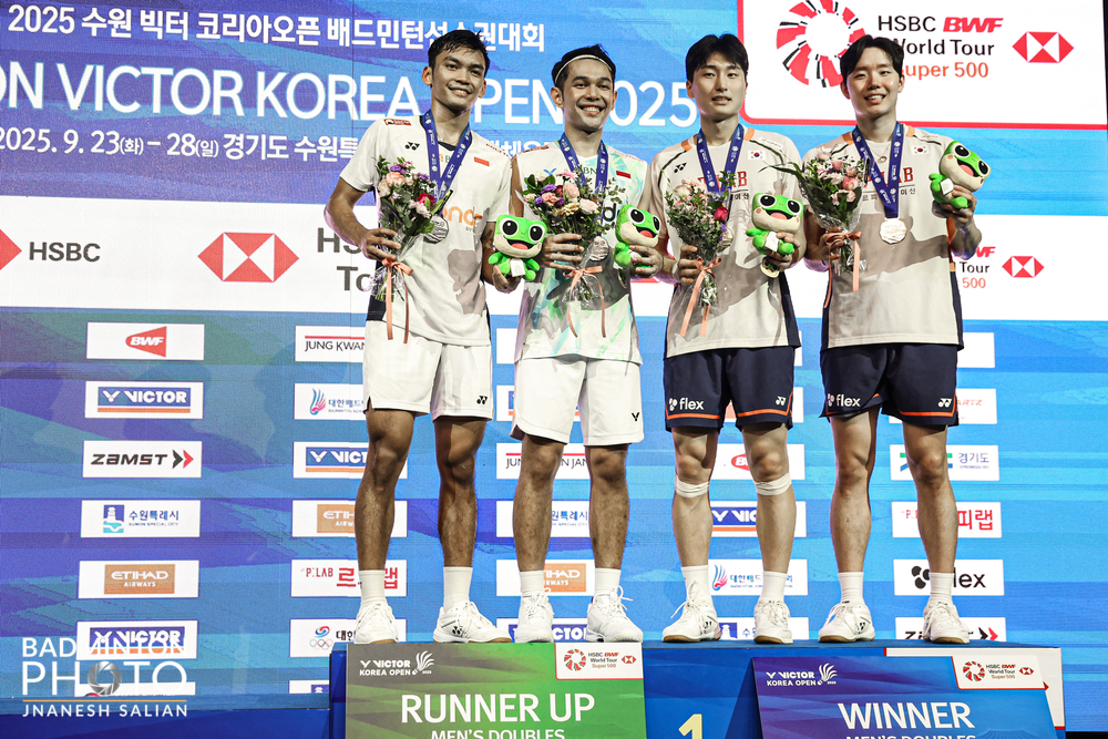 Na igrzyskach w Paryżu An przekreśliła marzenia Yamaguchi o olimpijskim medalu, pokonując Japonkę w ćwierćfinale. Potem Yamaguchi zrewanżowała się Koreance na finałach World Touru, ale wszystko wróciło do „normy” w bieżącym roku, kiedy An zwyciężyła w trzech kolejnych pojedynkach, w tym tydzień temu w Chinach. Przed finałem w Korei bilans dotychczasowych spotkań obu singlistek był remisowy — 14:14. Tak więc Yamaguchi odzyskała w nim prowadzenie. Jednak zanim Japonka zaskoczyła fanów Koreanki, złoty medal zdobyły deblistki gospodarzy — Kim Hye Jeong i Kong Hee Yong — pokonując rozstawioną z numerem jeden parę japońską, Rin Iwanaga, Kie Nakanishi. Humory gospodarzy (fot. 3) poprawili na koniec debliści, mistrzowie świata z Paryża, Kim Won Ho i Seo Seung Jae (fot. 4), ale nie obyło się bez suspensu, bo drugiego seta przeciwko Indonezyjczykom (Fajar Alfian, Muhammad Shohibul Fikri) wygrali zaledwie 23:21. Tydzień wcześniej w półfinale w Shenzhen sprawy się toczyły dużo prościej dla faworytów — wygrana z Indonezyjczykami przyszla im łatwiej. Tak jak An Se Young niespodziewanie nie odzyskała tytułu mistrzowskiego w Korea Open po rocznej przerwie (wygrywała na tym turnieju w latach 2022-2023), również nie udało się to czempionowi z 2023 roku, Duńczykowi Andersowi Antonsenowi, rozstawionemu z numerem jeden. W finale przegrał ze znakomitym, ale ostatnio rzadko błyszczącym pełnym blaskiem Indonezyjczykiem Jonatanem Christie. Gra mieszana stała się okazją do udanej rehabilitacji chińskich mikstów po ich półfinałowej wpadce przed własną publicznością tydzień wcześniej na China Masters. Rozstawieni tak samo jak w Shenzhen z numeremi jeden i dwa Chińczycy rozegrali finał pomiędzy sobą. Czy jednak zatarli wobec swych kibiców nienajlepsze wrażenie sprzed tygodnia? Chyba nie w pełni, bo po pierwsze turniej w Korei jest niższej rangi, a po drugie na starcie zabrakło finalistów z China Masters. Tryumfatorzy, czyli Dechapol Puavaranukroh i Supissara Paewsampran (Tajlandia), nie zgłosili się do turnieju w Korei, a wicemistrzowie China Masters, mistrzowie świata Chen Tang Jie i Toh Ee Wei (Malezja) wycofali się w ostatniej chwili z powodu lekkiej kontuzji prawego mięśnia skośnego brzucha Toh, odniesionej w Chinach. Wyniki finałów (28.09.2025) Gra pojedyncza mężczyzn Jonatan CHRISTIE (Indonezja, 4) — Anders ANTONSEN (Dania, 1) 21:10 15:21 21:17 (1:15). Gra pojedyncza kobiet Akane YAMAGUCHI (Japonia, 2) — AN Se Young (Korea, 1) 21:18 21:13 (0:45). Gra podwójna mężczyzn KIM Won Ho, SEO Seung Jae (Korea, 1) — Fajar ALFIAN, Muhammad Shohibul FIKRI (Indonezja) 21:16 23:21 (0:50). Gra podwójna kobiet KIM Hye Jeong, KONG Hee Yong (Korea, 2) — Rin IWANAGA, Kie NAKANISHI (Japonia, 1) 21:19 21:12 (0:50). Gra mieszana FENG Yan Zhe, HUANG Dong Ping (Chiny, 1) — JIANG Zhen Bang, WEI Ya Xin (Chiny, 2) 25:23 21:11 (0:42). Zob. też: Czy Antonsen odzyska tytuł w Korei? Troje Duńczyków wciąż w grze Górą Duńczycy Kim i Seo lepsi od b. partnera i niegdysiejszej gwiazdy Otwarte mistrzostwa Korei w badmintonie. SUWON VICTOR Korea Open 2025. 23 — 28 września 2025. Suwon (Korea Południowa). Turniej rangi HSBC BWF World Tour Super 500. Pula nagród: 475 tys. dol. Wyniki w serwisie BWF. Fot.: Jnanesh Salian © BadmintonPhoto.com (live) jr |