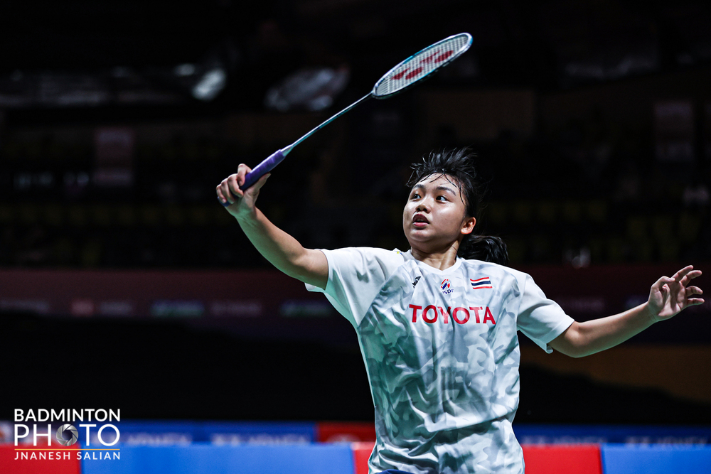 Bez zaskoczenia stwierdzamy, że przodują Chiny (7 medali), które wygrały z Indonezją finał drużynówki, dalej mamy właśnie Indonezję i Tajlandię (po 3), Koreę i Malezję (po 2) oraz Indie, Japonię i Tajwan (po 1). Jednak musimy poczekać do niedzieli na dystrybucję medali wedle koloru. Tą jedynaczką z kraju gospodarzy, Indii, jest 16-letnia Tanvi Sharma (fot. 1), która skądinąd jest obecna i w pierwszej pięćdziesiątce światowej elity w żeńskim singlu (47. BWF). Rozstawiona z numerem jeden Sharma wygrała w ćwierćfinale ze swoją rówieśniczką, 16-letnią Japonką Saki Matsumoto (fot. 2), 13:15 15:9 15:10. Przypomnijmy, że w drugiej rundzie (1/32 finału) Sharma rozniosła naszą Wiktorię Kaletkę 15:2 15:1. W półfinale Sharma zagra z Chinką Liu Si Ya. Jeśli wygra, w finale może się spotkać z rozstawioną z numerem dwa Tajlandką Anyapat Phichitpreechasak (fot. 3), która w ćwierćfinale ograła rodaczkę Sharmy, Unnati Hoodę 15:12 15:13. Jednak, aby dotrzeć do finału, Phichitpreechasak musi w półfinale pokonać swoją rodaczkę, Yataweemin Ketklieng. Zob. też: Podkowiński i Morawski wylądowali na 9. miejscu w MŚ Morawski i Podkowiński w najlepszej „16” MŚ Biało-Czerwoni wykruszyli się — już niemal wszyscy Indywidualne mistrzostwa świata juniorów (U-19) w badmintonie (Eye-Level Cups — YONEX SUNRISE BWF World Junior Championships 2025). 13 — 19 października 2025. Guwahati, Assam (Indie). National Centre of Excellence. Kategoria: Grade 1 — Junior Tournament. Wyniki w serwisie BWF. Fot. Jnanesh Salian © BadmintonPhoto.com (live) jr |