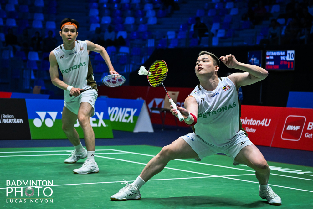 Jednak medal zapewnił sobie w piątek inny reprezentant gospodarzy, Christo Popov (fot. 2-3), który w bardzo przekonujący sposób ograł Tajwańczyka Chi Yu Jena, nie dając mu właściwe dojść do głosu. A przecież Chi już w samym French Open zdołał wcześniej wyeliminować takie gwiazdy jak były mistrz świata Loh Kean Yew (Singapur) i brązowy medalista igrzysk olimpijskich w Tokio, Anthony Sinisuka Ginting (Indonezja). Christo Popov w sobotnim półfinale zagra z aktualnym wicemistrzem świata, byłym mistrzem świata i wicemistrzem olimpijskim z Paryża, Tajlandczykiem Kunlavutem Vitidsarnem, który w piątek pokonał Alwiego Farhana (Indonezja), czyli pogromcę asa gospodarzy, Alexa Laniera. W drugim półfinale Chińczyk Li Shi Feng (dzięki zwycięstwu 21:18 15:21 21:17 nad Japończykiem Kokim Watanabe) zagra z Duńczykiem Andersem Antonsenem (fot. 4), który wygrał ze swoim rodakiem Viktorem Axelsenem 21:15 17:21 21:12. W singlu kobiet zaś, gdyby jedynka, An Se Young (fot. 5) z Korei nie poradziła sobie z Chinką Gao Fang Jie (Koreanka jednak wygrała trzeciego seta do 18), to w półfinałach mielibyśmy komplet Chinek. Ciekawe, czy An Se Young wytrzyma rozpoczęty w ćwierćfinale serial meczów z Chinkami. Natomiast gdyby rozstawieni z numerem dwa malezyjscy tytani męskiego debla, Aaron Chia i Soh Wooi Yik (fot. 6), nie poradzili sobie w piątek z groźnym duetem indonezyjskim Sabar Karyaman Gutama, Moh Reza Pahlevi Isfahani, to klęska Malezji w ćwierćfinałach byłaby totalna. Ale dwukrotni brązowi medaliści olimpijscy i byli mistrzowie świata wyszli z opresji, wygrywając 21:19 16:21 21:19. Reszta malezyjskich par deblowych i mieszanych (singliści odpadli wcześniej) przegrała w piątek. Można się więc dopatrywać spełnienia ostrzeżenia z ust byłego dyrektora ds. wyników w Malezyjskim Związku Badmintona Jamesa Selvaraja, który obawiał się wyeksploatowania wicemistrzyń świata w deblu kobiet, Pearly Tan i Muralitharan Thinaah, na turniejach Super 500, co miałoby przeszkodzić w odniesieniu sukcesów na turniejach wyższej rangi, Super 750, rozgrywanych w Europie po Arctic Open (Denmark Open i French Open). Malezyjki faktycznie wygrały w Finlandii Super 500, ale zaraz potem odpadły w drugiej rundzie w Danii, a teraz przegrały w ćwierćfinale we Francji. Z drugiej jednak strony o zwycięstwo w ćwierćfinale French Open byłoby Malezyjkom trudno, ponieważ były skazane na konfrontację z mistrzyniami olimpijskimi z Paryża, Chen Qing Chen, Jia Yi Fan (Chiny), z którymi bilans był już przed piątkowym meczem bardzo niekorzystny — 1:8. Inna rzucająca się w oczy piątkowa porażka badmintonistów spod flagi Malezji to ta poniesiona przez aktualnych mistrzów świata, Chen Tang Jie i Toh Ee Wei z hongkońskim mikstem Tang Chun Man, Tse Ying Suet. Na pierwszy rzut oka bolesna, bo światowi czempioni wcześniej tylko wygrywali w starciach z Hongkończykami. Jednak tym razem malezyjskiego miksistę już przed meczem ręka bolała tak, że z trudem ją podnosił, więc przegrana była niemal przesądzona i rzeczywiście nastąpiła w stosunku 9:21 18:21. Z kolei porażka drugiego debla malezyjskiego, Goh Sze Fei, Nur Izzuddin, z duńskim duetem Kim Astrup, Anders Skaarup Rasmussen (fot. 7) była naprawdę minimalna — 23:25 w trzecim secie, więc może malezyjscy kibice nie powinni dramatyzować mimo odpadnięcia jeszcze w ćwierćfinałach jeszcze ich jednego miksta i dwóch debli męskich? Otwarte mistrzostwa Francji w badmintonie. YONEX French Open 2025. 21 — 26 października 2025. Cesson-Sévigné (Rennes Métropole). Glaz Arena. Zawody HSBC BWF World Tour Super 750. Pula nagród: 950 tys. dol. Wyniki w serwisie BWF. Fot.: Raphael Sachetat, Lucas Noyon © BadmintonPhoto.com (live) jr |