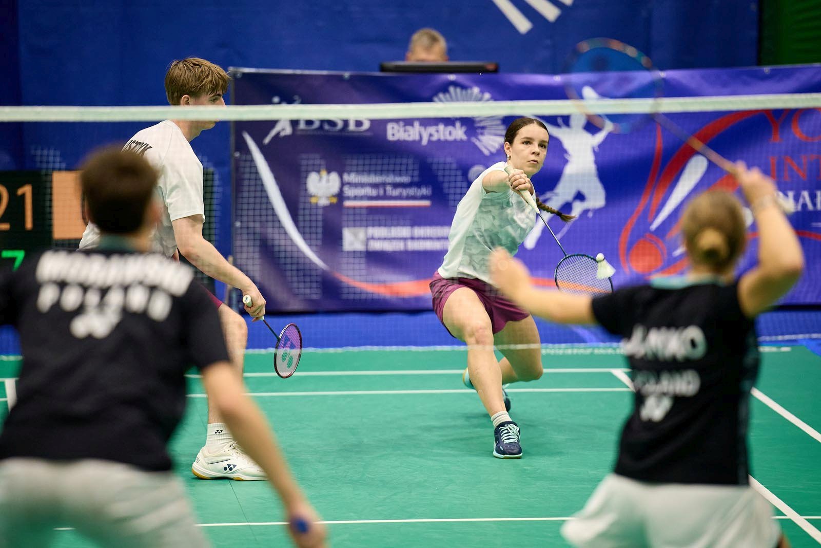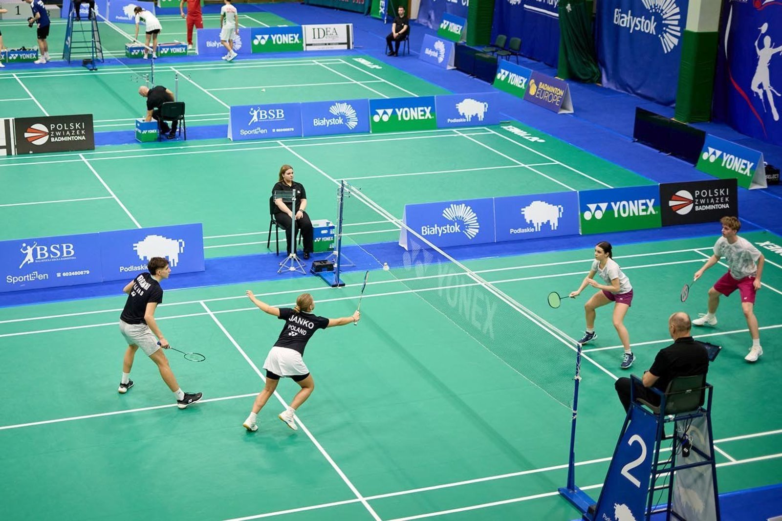 Janko niedawno zdobyła w parze z Mikołajem Morawskim mistrzostwo Polski juniorów w grze mieszanej (zob. Młodzieżowi czempioni) i z tym samym partnerem wygrała w Kownie, a teraz w Białymstoku na międzynarodowych mistrzostwach Polski U19 (YONEX Polish International U19). Również w Kownie i teraz w Białymstoku zgarnęła w parze z Alicją Syrek złoto w deblu. Trzeci tytuł mistrzowski YONEX Polish International U19 dla Polaków przypadł deblistom, to Paweł Kiszczyk i Damian Perkowski. Za nami nie tylko kolejna edycja międzynarodowych mistrzostw Polski juniorów, ale także Yonex Międzynarodowego Festiwalu w Badmintonie — przeznaczonego dla młodszych badmintonistów. Obie te imprezy zakończyły się w weekend w Białymstoku. W rywalizacji U19 Polacy zdobyli także trzy srebrne i cztery brązowe medale. W obu międzynarodowych imprezach w Białymstoku wystąpiło około 350 badmintonistów z 16 państw świata. Gościliśmy zawodników z takich krajów jak Katar, Turcja czy odległy Meksyk. W Yonex Festiwalu wystartowali najmłodsi adepci w kategoriach U9, U11, U13 i U15. W Yonex Polish International juniorzy z kategorii U19. Zawody rozgrywano w dwóch lokalizacjach, w hali Zespołu Szkół Rolniczych w Białymstoku przy ul. Suchowolca 26 oraz w dwóch halach ZSOMS nr 3 przy ul. Pietrasze 29. Rywalizację w YONEX Polish International U19 było można śledzić na żywo, bowiem prowadzona była transmisja LIVE na kanale YouTube Polskiego Badmintona równolegle ze wszystkich kortów. Zapis relacji: https://www.youtube.com/@PolskiBadminton/streams. Serwis fotograficzny dostępny na oficjalnym profilu społecznościowym zawodów na platformie facebookowej @IMPBad (Mistrzostwa w Badmintonie), autorem fotografii jest Rafał Oleksiewicz - https://www.facebook.com/IMPBad/photos. Wyniki finałów (9.11.2025) Gra pojedyncza mężczyzn Raul Bergua (Hiszpania) – Yaidel Gil (Hiszpania) 21:11, 21:12. Gra pojedyncza kobiet Ishasriya Mekala (Walia) – Olga Szwarnowiecka (Polska) 21:7, 21:17. Gra podwójna mężczyzn Maja Janko, Alicja Syrek (Polska) – Raija Almałałcha, Sofija Biełobrowczuk (Ukraina) 21:16, 21:16. Gra mieszana Mikołaj Morawski, Maja Janko (Polska) – Krzysztof Podkowiński, Alicja Syrek (Polska) 21:17, 21:18. Medaliści Singel mężczyzn 1. Raul Bergua (Hiszpania) 2. Yaidel Gil (Hiszpania) 3. Marti Joost (Estonia); Nojus Tenikaitis (Litwa) 1. Ishasriya Mekala (Walia) 2. Olga Szwarnowiecka (Polska) 3. Aleksandra Kurkiewicz (Polska); Alicja Syrek (Polska) Debel mężczyzn 1. Paweł Kiszczyk, Damian Perkowski (Polska) 2. Mikołaj Morawski, Krzysztof Podkowiński (Polska) 3. Rokas Lesinskas, Nojus Tenikaitis (Litwa); Marti Joost, Rasmus Roogsoo (Estonia) Debel kobiet 1. Maja Janko, Alicja Syrek (Polska) 2. Raija Almałałcha, Sofija Biełobrowczuk (Ukraina) 3. Taja Leonovic, Giedra Velykyte (Litwa); Hanna Stachera, Olga Szwarnowiecka (Polska) 1. Mikołaj Morawski, Maja Janko (Polska) 2. Krzysztof Podkowiński, Alicja Syrek (Polska) 3. Georgi Rupcow, Elena Popiwanowa (Bułgaria); Paweł Kiszczyk, Hanna Stachera (Polska) Organizatorami mistrzostw byli: Polski Związek Badmintona, Podlaski Okręgowy Związek Badmintona oraz Sportlen Paweł Lenkiewicz. Partnerami strategicznymi wydarzenia były Miasto Białystok, Urząd Marszałkowski Województwa Podlaskiego, Ministerstwo Sportu i Turystyki. Partnerem sportowym była marka Yonex. Międzynarodowe Mistrzostwa Polski Juniorów U19 (YONEX Polish International U19). 7 — 9 listopada 2025. Białystok. Hala Zespołu Szkół Rolniczych w Białymstoku przy ul. Suchowolca 26. Kategoria: Junior International Series. Wyniki w serwisie BWF. YONEX POLISH INTERNATIONAL FESTIVAL. 7 — 9 listopada 2025. Białystok. Hala ZSOMS, ul. Pietrasze 29. Wyniki w serwisie pzbad.tournamentsoftware.com. Fot. (live) Rafał Oleksiewicz (mat. prasowe organizatora) jr, mat. Organizatora |