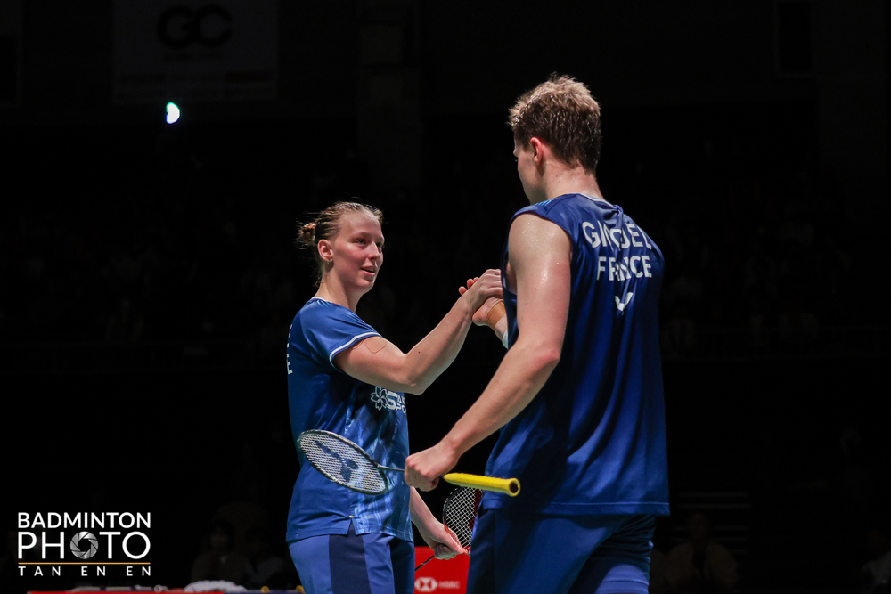 Delphine Delrue i Thom Gicquel (fot.) przełamali swą tegoroczną słabość (0:2, w tym finał Hylo Open) w starciach z duńską parą mieszaną Alexandra Bøje, Mathias Christiansen, wygrawszy z nią w ćwierćfinale turnieju badmintona Kumamoto Masters Japan 2025 HSBC BWF World Tour Super 500 (475 tys. dol.) 21:15 13:21 21:15.