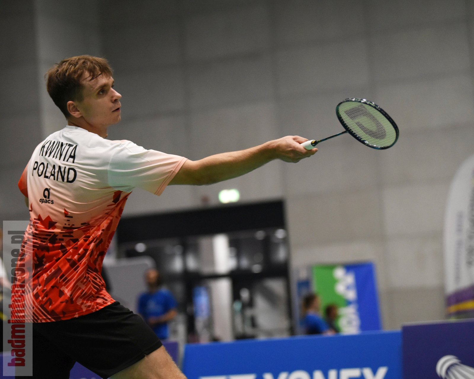 Dominik Kwinta (fot.), grający na pozycji drugiego singlisty, zdobył dla męskiego teamu biało-czerwonych punkt w spotkaniu z Niemcami w 2. dniu Eliminacji Mistrzostw Europy Drużyn Męskich i Żeńskich (2026 European Men's & Women's Team Championships Qualification), pokonując Kian-Yu Oei 21:8 21:13.