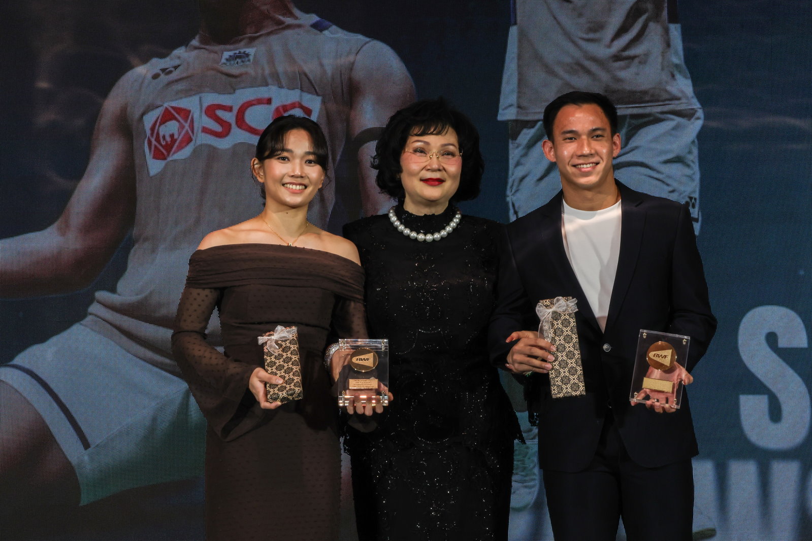 W turnieju startują najlepsi w klasyfikacji cyklu, konkretnie czołowe ósemki, na przykład w singlu mężczyzn to: 1. Kunlavut Vitidsarn (Tajlandia), 2. Li Shi Feng (Chiny), 3. Chou Tien Chen (Tajwan), 4. Anders Antonsen (Dania), 5. Christo Popov (Francja), 6. Jonatan Christie (Indonezja), 7. Shi Yu Qi (Chiny), 8. Kodai Naraoka (Japonia). Do półfinałów awans z dwóch pierwszych pozycji w każdej z dwóch grup w danej kategorii (jest ich oczywiście pięć). Część z uczestników elitarnego turnieju miała okazję dwa dni wcześniej odebrać na miejscu wyróżnienia w ramach ogłoszenia laureatów na dorocznej ceremonii wręczenia nagród Światowej Federacji Badmintona (Badminton World Federation — BWF) Player of the Year. Nagrody znowu otrzymali za gry pojedyncze An Se Young (na fot. 1 towarzyszy jej prezes BWF Khunying Patama Leeswadtrakul) i Shi Yu Chi (fot. 2), przy czym ten ostatni dołączył tym razem także dowód największego uznania ze strony innych zawodników w postaci tytułu badmintonisty roku według zawodników (Players’ Player of the Year) — rok temu ten tytuł przypadł Duńczykowi Viktorowi Axelsenowi, mającemu na koncie olimpijskie złoto. Koreanka An już w zeszłym roku była uhonorowana podwójnie. Shi, który w tym roku zdobył po raz pierwszy mistrzostwo świata, a na igrzyskach w Paryżu w 2024 roku wypadł blado, komentował: W zeszłym roku również otrzymałem nagrodę zawodnika roku, ale moich wyników z zeszłego roku nie można porównać z tym, co osiągnąłem w tym roku. Gdybym miał ocenić swoje wyniki z 2025 roku, dałbym sobie 8 lub 9 na 10 punktów. Ale nie zamierzam poprzestać na tym. An była jeszcze bardziej emocjonalna: Jestem zaszczycona otrzymaniem tych nagród. Stanowią one dla mnie zachętę do dalszych wysiłków. Zdobycie tytułów jest dowodem moich wysiłków, jednak nagroda zawodniczki roku przyznawana przez innych jest wyrazem uznania ze strony moich konkurentek i uosabia ich miłość i wdzięczność, dlatego jest dla mnie tak wyjątkowa. Ponownie — jak i w zeszłym roku — wyróżniono chiński debel żeński Liu Sheng Shu, Tan Ning (fot. 3). Dwa wyróżnienia (indywidualnie i w deblu) zdobył malezyjski parabadmintonista Cheah Liek Hou (na fot. 4 z prawej, obok partnera deblowego, Muhammada Fareeza Anuara) brylujący w kategorii Bartłomieja Mroza (SU 5). Dostrzeżono oczywiście pierwszego kanadyjskiego medalistę mistrzostw świata, 20-letniego Victora Lai'a (nagroda: najbardziej obiecujący zawodnik roku — Eddy Choong Rising Star of the Year — fot. 5) Laureaci Singlista roku — Men’s Singles Player of the Year: Shi Yu Qi (Chiny). Singlistka roku — Women’s Singles Player of the Year: An Se Young (Korea). Debel mężczyzn roku — Men’s Doubles Player of the Year: Kim Won Ho, Seo Seung Jae (fot. 6, Korea). Mikst roku — Mixed Doubles Player of the Year: Dechapol Puavaranukroh, Supissara Paewsampran (fot. 6, Tajlandia). Parabadmintonista roku — Men’s Para Badminton Player of the Year: Cheah Liek Hou (Malezja). Parabadmintonistka roku — Women’s Para Badminton Player of the Year: Ilaria Olgiati (fot. 7, Szwajcaria). Parabadmintonowa para roku — Para Badminton Pair of the Year: Cheah Liek Hou, Muhammad Fareez Anuar (Malezja). Najbardziej obiecujący zawodnik roku — Eddy Choong Rising Star of the Year: Victor Lai (Kanada). Badmintonista roku wg zawodników — Players’ Player of the Year (Men): Shi Yu Qi (Chiny). Badmintonistka roku wg zawodniczek — Players’ Player of the Year (Women): An Se Young (Korea). Finały cyklu HSBC BWF World Tour w badmintonie. HSBC BWF World Tour Finals 2025. 17-21 grudnia 2025. Hangzhou (Chiny). Pula nagród: 3 mln dol. Wyniki w serwisie BWF. Fot. mat. prasowe BWF (live) jr |