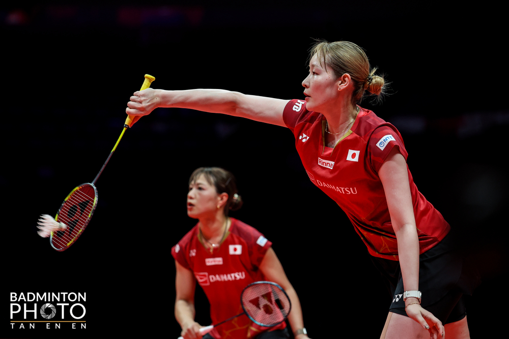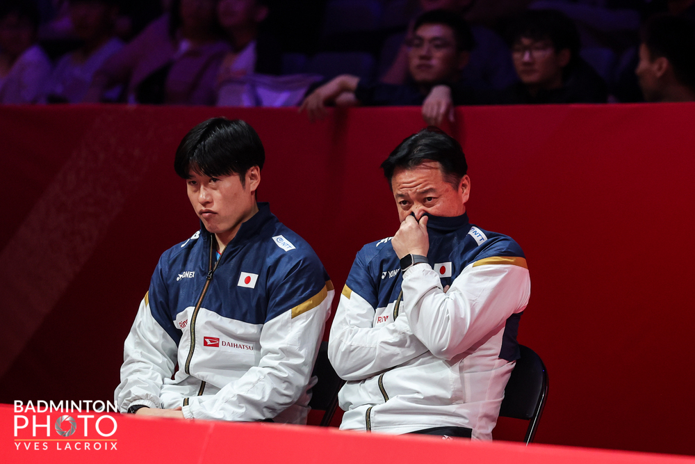 Zachwyt Francuzów (i nie tylko) wzbudza występ 23-letniego Christo Popova. W półfinale miał w pierwszym secie problemy z Japończykiem Kodai Naraoką (fot. 1), który dobrze taktycznie hamował zapędy Francuza i długo prowadził. Jednak Popov dobrze atakował stronę bekhendową rywala, który pomógł mu w kluczowym momencie końcówki niewymuszonym błędem. W drugim secie Francuz przejął już w pełni kontrolę, co obrazują posępne miny sekundantów Naraoki (na fot. 2 Sho Sasaki i Hiroshi Naraoka). Zwycięski Christo Popov (fot. 3) w finale zmierzy się z aktualnym mistrzem świata Shi Yu Qim (Chiny), który w półfinale powtórzył zwycięstwo z mistrzostw świata w Paryżu nad Tajlandczykiem Kunlavutem Vitidsarnem. W półfinale singla pań lepiej kondycyjnie trzysetowy pojedynek niż jej starsza rywalka, Ratchanok Intanon z Tajlandii, zniosła Chinka Wan Zhi Yi i zagra w niedzielę z faworytką, Koreanką An Se Young. An stosunkowo bezboleśnie uporała się z aktualną mistrzynią świata, Akane Yamaguchi (Japonia). Jeśli w niedzielę Koreanka pokona Chinkę (i po raz drugi wygra World Tour Finals) jej dorobek premii turniejowych z tego roku przekroczy milion dolarów. W finale debla mężczyzn spotkają się faworyci, koreańscy mistrzowie świata, Kim Won Ho i Seo Seung Jae (w półfinale rozgromili Indonezyjczyków), oraz Chińczycy, Liang Wei Keng, Wang Chang, którzy nieco bardziej (trwało to ponad godzinę) natrudzili się w sobotę w spotkaniu z Satwiksairajem Rankireddym i Chiragiem Shettym. Najbardziej zaskakujący wydaje się w sumie rezultat półfinałów debla kobiet. Mistrzynie świata, rozstawione z numerem trzy Chinki Liu Sheng Shu i Tan Ning, uległy Koreankom, Baek Ha Na, Lee So Hee (fot. 4), i to był najdłuższy półfinał (godzina i 20 minut). A rozstawione z numerem dwa Malezyjki, wicemistrzynie świata Pearly Tan i Muralitharan Thinaah (2. BWF) uległy Japonkom, Mayu Matsumoto, Yuki Fukushima (fot. 5). Tan i Thinaah zmarnowały w drugm secie prowadzenie 7:1. U Malezyjek zawiodła defensywa, ale w sumie ich przegrana była o tyle prawdopodobna, że z Japonkami przegrały już poprzedniego dnia w fazie grupowej. W sobotę z turniejem pożegnali się aktualni mistrzowie świata, Chen Tang Jie, Toh Ee Wei (Malezja). Ich rywale, Chińczycy Jiang Zhen Bang i Wei Ya Xin zrewanżowali się malezyjskim czempionom za finał w Paryżu. Okazali się odporni na nadużywany przez Chen Tang Jie serwis typu flick, ale mecz w sumie potrwał prawie godzinę. Finał będzie rozegrany pomiędzy Chińczykami, bo w drugim finale inna ich czołowa para ograła w trzech setach mikst z Japonii. Wyniki półfinałów (20.12.2025) Singel mężczyzn Christo POPOV (Francja) — Kodai NARAOKA (Japonia) 21:19 21:8 (0:50); SHI Yu Qi (Chiny) — Kunlavut VITIDSARN (Tajlandia, 1) 21:16 21:13 (0:52). Singel kobiet AN Se Young (Korea, 1) — Akane YAMAGUCHI (Japonia, 4) 21:15 21:12 (0:38); WANG Zhi Yi (Chiny, 2) — Ratchanok INTANON (Tajlandia) 15:21 21:17 21:11 (1:16). KIM Won Ho, SEO Seung Jae (Korea, 1) — Sabar Karyaman GUTAMA, Moh Reza Pahlevi ISFAHANI (Indonezja) 21:9 21:11 (0:28); LIANG Wei Keng, WANG Chang (Chiny) — Satwiksairaj RANKIREDDY, Chirag SHETTY (Indie, 3) 10:21 21:17 21:13 (1:03). Debel kobiet Yuki FUKUSHIMA, Mayu MATSUMOTO (Japonia) — Pearly TAN, THINAAH Muralitharan (Malezja, 1) 21:19 21:13 (1:01) 9:21 21:11 21:17 (0:58); BAEK Ha Na, LEE So Hee (Korea) — LIU Sheng Shu, TAN Ning (Chiny, 3) 15:21 21:16 21:19 (1:20). Mikst FENG Yan Zhe, HUANG Dong Ping (Chiny, 2) — Hiroki MIDORIKAWA, Natsu SAITO (Japonia) 22:20 17:21 21:9 (1:07); JIANG Zhen Bang, WEI Ya Xin (Chiny, 4) — CHEN Tang Jie, TOH Ee Wei (Malezja, 3) 9:21 21:11 21:17 (0:58). Finały cyklu HSBC BWF World Tour w badmintonie. HSBC BWF World Tour Finals 2025. 17-21 grudnia 2025. Hangzhou (Chiny). Hangzhou Olympic Sports Centre Gymnasium. Pula nagród: 3 mln dol. Wyniki w serwisie BWF. Fot. Liang Jing, Yves Lacroix, Tan En En © BadmintonPhoto.com (live) jr |