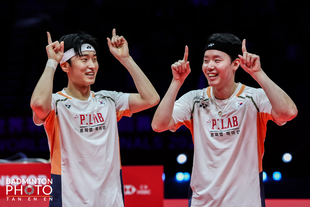 W pierwszej partii obrońca tytułu sprzed roku, zarazem aktualny mistrz świata, Chińczyk Shi Yu Qi, potrafił mylić zwodniczymi zagraniami Francuza Christo Popova (fot. 1-2), ale ten ostatni nadrabiał to często prędkością. Fantastyczna z obu stron wymiana doprowadziła do wyrównania przez Chińczyka na 8:8, po innej bardzo dynamicznej, kiedy Francuz pośliznął się i wylądował na macie, skąd jeszcze próbował się bronić, Shi objął prowadzenie 13:12. Szybkość i ambicja Popova wzięła górę, objął prowadzenie 20:17 i skończył zwycięsko pierwszą partię przy trzeciej lotce setowej. Od połowy drugiego seta Shi przestał nadążąć za zagraniami przeciwnika (obserwatorzy, jak i Christo byli skłonni złożyć to na karb lekkiej kontuzji) i sprawy potoczyły się już szybciutko (21:9) ku zawodowi rodaków Shi, który zresztą pochodzi z tego regionu Chin. 23-letni Popov dokonał historycznego wyczynu nie tylko w wymiarze osobistym (przedtem wygrał co najwyżej Super 300), ale także krajowym: przebił nawet wygraną francuskiego miksta w Indonesia Open. Zarobił przy okazji 240 tysięcy dolarów i awansuje na szóste miejsce rankingu światowego. W Hangzhou zjawił się w roli debiutanta i Kopciuszka, a tymczasem pokonał rywali zajmujących obecnie pozycje 1, 2, 3 i 5 w rankingu światowym (z 4. nie miał okazji w Hangzhou zagrać). Bank rozbiła także w singlu Koreanka An Se Young (fot. 3). W finale, nieco utykając, pokonała po najdłuższym pojedynku dnia obrończynię tytułu Wang Zhi Yi, co dało jej premię finansową taką, że w skali roku zarobek ściśle turniejowy przekroczył milion dolarów. Nic zresztą dziwnego, bo wyrównała tym samym rekord japońskiego singlisty Kento Momoty z 2019 roku w kategorii największej liczby tytułów zdobytych w ciągu jednego roku kalendarzowego — jedenaście! Magiczna jedenastka pojawiła się też po zwycięstwie w finale debla koreańskiego duetu. Mistrzowie świata, Kim Won Ho i Seo Seung Jae (fot. 4), pokonali Chińczyków Liang Wei Kenga i Wang Changa 21:18 21:14. Zaraz po wygranej obaj pokazali "jedenastki", gdzyż to ich wspólne 11. zwycięstwo w turniejach międzynarodowych (World Tour plus mistrzostwo świata). Korea odniosła też sukces w grze podwójnej, gdzie para kobiet Baek Ha Na i Lee So Hee pokonała Japonki Mayu Matsumoto i Yuki Fukushima (fot. 5) 21:17 21:11. Kibice gospodarzy mieli największe powody do radości tylko na początku, kiedy to ich para mieszana Feng Yan Zhe i Huang Dong Ping pokonała swoich rodaków Jiang Zhen Banga i Wei Ya Xin (fot. 6) 21:12 21:17. Mniej tytułów mistrzowskich w HSBC BWF World Tour Finals (rozgrywanych od 2018 roku) Chiny miały tylko w czasach pandemii, kiedy nie startowały, wycofywały się nawet z organizacji finałów. Wyniki finałów (21.12.2025) Singel mężczyzn Christo POPOV (Francja) — SHI Yu Qi (Chiny) 21:19 21:9 (0:45). Singel kobiet AN Se Young (Korea, 1) — WANG Zhi Yi (Chiny, 2) 21:13 18:21 21:10 (1:36). Debel mężczyzn KIM Won Ho, SEO Seung Jae (Korea, 1) — LIANG Wei Keng, WANG Chang (Chiny) 21:18 21:14 (0:40). Debel kobiet Mikst FENG Yan Zhe, HUANG Dong Ping (Chiny, 2) — JIANG Zhen Bang, WEI Ya Xin (Chiny, 4) 21:12 21:17 (0:45) . Zob. także: Tort prawie podzielony Pietruszka warta 15 tys. dol. Popov daje radę! Do siedmiu razy sztuka (World Tour Finals) Finały cyklu HSBC BWF World Tour w badmintonie. HSBC BWF World Tour Finals 2025. 17-21 grudnia 2025. Hangzhou (Chiny). Hangzhou Olympic Sports Centre Gymnasium. Pula nagród: 3 mln dol. Wyniki w serwisie BWF. Fot. Yves Lacroix, Liang Jing, Tan En En © BadmintonPhoto.com (live) jr |