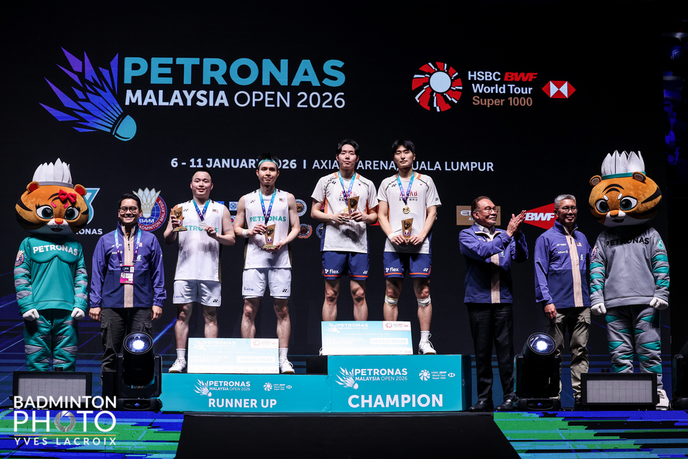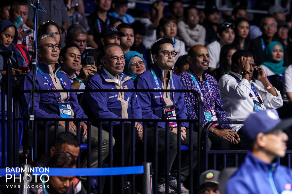 Ogłuszający doping widowni zgromadzonej w Axiata Arenie (fot. 1) i obecność premiera Malezji Anwara Ibrahima (na fot. 2 w pierwszym rzędzie, pośrodku, bez identyfikatora) nie zdołały przeważyć szali w finale otwartych mistrzostw Malezji w badmintonie (PETRONAS Malaysia Open 2026 HSBC BWF World Tour Super 1000, 1,45 mln dol.) na stronę debla gospodarzy, Aaron Chia, Soh Wooi Yik w starciu z dominującym ostatnio na świecie koreańskim duetem Kim Won Ho, Seo Seung Jae.
