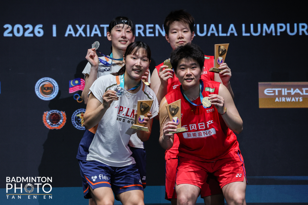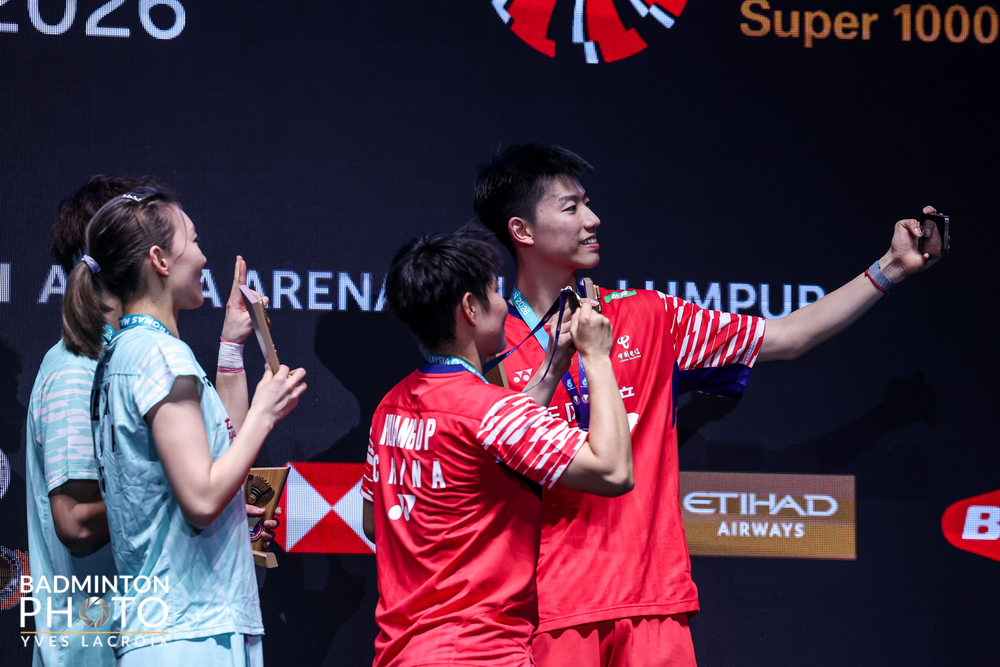 Jednak zapewne te okoliczności dopomogły Malezyjczykom w wygraniu drugiego seta i stawianiu oporu Koreańczykom aż do stanu 18:19 w trzecim secie. Niższy stopień podium (na fot. 3 także wspomniany premier Malezji trzeci od prawej) to i tak najlepszy wynik deblistów gospodarzy na Malaysia Open od 2014 roku. Na pocieszenie Aaron Chia i Soh Wooi Yik odebrali gratulacje od swojego premiera i kwotę 50,75 tysięcy dolarów (duet Kim Won Ho, Seo Seung Jae otrzymał 107,3 tysięcy dolarów. Wynik finału debla mężczyzn potwierdził aktualne rankingowe status quo w tej konkurencji, a rozstawieni z numerem jeden wygrali z numerem dwa, zarazem obroniwszy tytuł zdobyty przed rokiem. Podobnie stało się w finale singla kobiet, gdzie tryumfowała zgodnie z oczekiwaniami rodaczka Kima i Seo, czyli obrończyni tytułu w Kuala Lumpur, An Se Young (fot. 4-5). Jej zwycięstwo nad Wang Zhi Yi zwiększyło przewagę koreańskiej supergwiazdy nad Chinką do 17:4 w bezpośrednich pojedynkach. Była to ósma z rzędu finałowa porażka Wang Zhi Yi z An Se Young od zeszłego roku. Nie inaczej było w podziale nagród w grze mieszanej, gdzie chińska jedynka, Feng Yan Zhe, Huang Dong Ping ograła równie chińską dwójkę Jiang Zhen Bang, Wei Ya Xin (fot. 6) 21:19 21:19. Wyjątkiem pod tym względem był finał gry pojedynczej mężczyzn. Rozstawiony z numerem jeden obrońca tytułu, aktualny mistrz świata i lider rankingu BWF, Chińczyk Shi Yu Qi, skreczował przy niekorzystnym dlań stanie 21:23 1:6 z powodu kontuzji pleców. W ten sposób numer dwa, Tajlandczyk Kunlavut Vitidsarn (fot. 7-8), zrewanżował się Chińczykowi za porażkę w zeszłorocznym finale mistrzostw świata w Paryżu. Tajlandzki badmintonista, który otrzymał na podium trofeum z rąk malezyjskiego mistrza Lee Chong Wei'a (na fot. 7 gratuluje Shi Yu Qiemu), przyznał, że to właśnie ten przyjaźniący się z nim wielki badmintonista udzielił mu porad, które pomogły mu wytrzymac presję na korcie Złoto w deblu pań wywalczyły rozstawione z numerem jeden mistrzynie świata, Chinki Liu Sheng Shu, Tan Ning (fot. 9), które odzyskały tytuł utracony rok temu na rzecz japońskiej pary Yuki Fukushima, Mayu Matsumoto. Jednak w finale nie zagrały z wyeliminowanymi wcześniej z turnieju rozstawionymi z numerem dwa faworytkami gospodarzy, aktualnymi wicemistrzyniami świata Pearly Tan i Thinaah Muralitharan, lecz z tryumfatorkami grudniowych World Tour Finals, Baek Ha Na, Lee So Hee z Korei. Teraz World Tour przenosi się (a wraz z nim polski debel Paulina Cybulska, Kornelia Marczak, który trafia na początku na piekielnie mocne Japonki, Arisę Igarashi i Chiharu Shidę) do Indii na turniej kategorii Super 750 (Yonex-Sunrise India Open 2026, 950 tysiecy dolarów). Wyniki finałów (11.01.2026) Singel mężczyzn Kunlavut VITIDSARN (Tajlandia, 2) — SHI Yu Qi (Chiny, 1) 23:21 6:1 (0:36). Singel kobiet AN Se Young (Korea, 1) — WANG Zhi Yi (Chiny, 2) 21:15 24:22 (0:56). Debel mężczyzn KIM Won Ho, SEO Seung Jae (Korea, 1) — Aaron CHIA, SOH Wooi Yik (Malezja, 2) 21:15 12:21 21:18 (1:06). Debel kobiet LIU Sheng Shu, TAN Ning (Chiny, 1) — BAEK Ha Na, LEE So Hee (Korea, 6) 21:18 21:12 (1:07). Mikst FENG Yan Zhe, HUANG Dong Ping (Chiny, 1) — JIANG Zhen Bang, WEI Ya Xin (Chiny, 2) 21:19 21:19 (0:45). Zob. też: Ranking rządzi na Malaysia Open Będzie rewanż za finał MŚ w Paryżu? Japońska lekcja dla Polek, „klątwa” dla gospodarzy Cybulska i Marczak awansowały do 1/8 finału w Malezji Dobry początek kanadyjskiego debiutanta Otwarte mistrzostwa Malezji w badmintonie. PETRONAS Malaysia Open 2026. 6 — 11 stycznia 2026. Kuala Lumpur (Malezja). Stadium Axiata Arena, KL Sports City, Bukit Jalil. Kategoria: HSBC BWF World Tour Super 1000. Pula nagród: 1,45 mln dol. Wyniki w serwisie BWF. Fot. Yves Lacroix, Tan En En © BadmintonPhoto.com (live) jr |