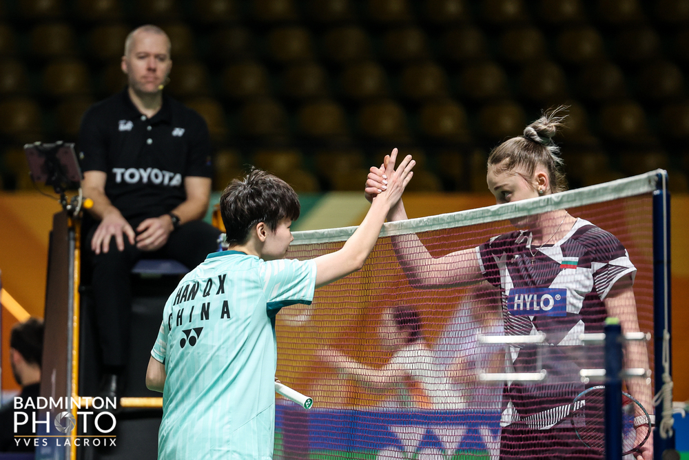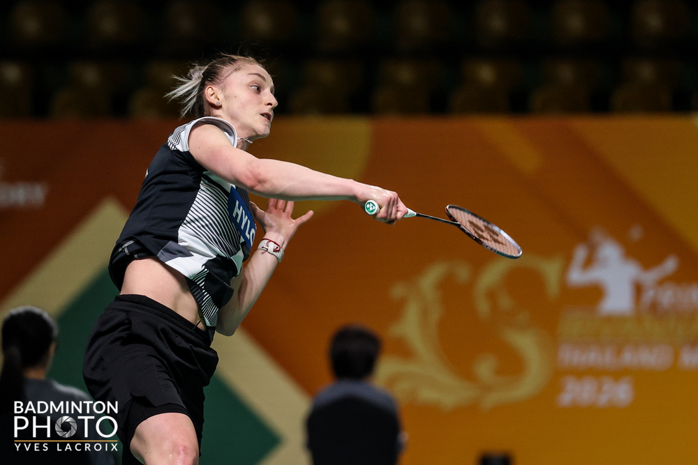 Występująca obecnie w polskiej Ekstralidze Badmintona — Yonex 19-letnia Bułgarka Kałojana Nałbantowa (fot. 1-2) urwała seta Chince Han Qian Xi (fot. 2) w pierwszej rundzie rozgrywanego w Bangkoku turnieju badmintona PRINCESS SIRIVANNAVARI Thailand Masters 2026 (HSBC BWF World Tour Super 300, 250 tys. dol.).
