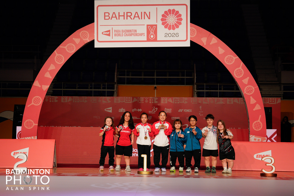 Daria Bujnicka i Oliwia Szmigiel (na fot. 1 z prawej) otrzymały w sobotę brązowe medale w deblu kategorii SH 6 na mistrzostwach świata w parabadmintonie (BAHRAIN BWF Para Badminton World Championships 2026), a finał wygrały Chinki, Li Fengmei i Lin Shuangbao, deklasując parę Yasmina Eissa (Egipt), Jayci Simon (USA) 21:5 21:9.